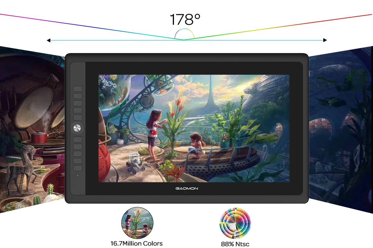 GAOMON 15.6 Inch Full-Laminated 88% NTSC Pen Display with 9 Express Keys and 8192 Passive Tilt-Support Pen – PD156 Pro Drawing Monitor