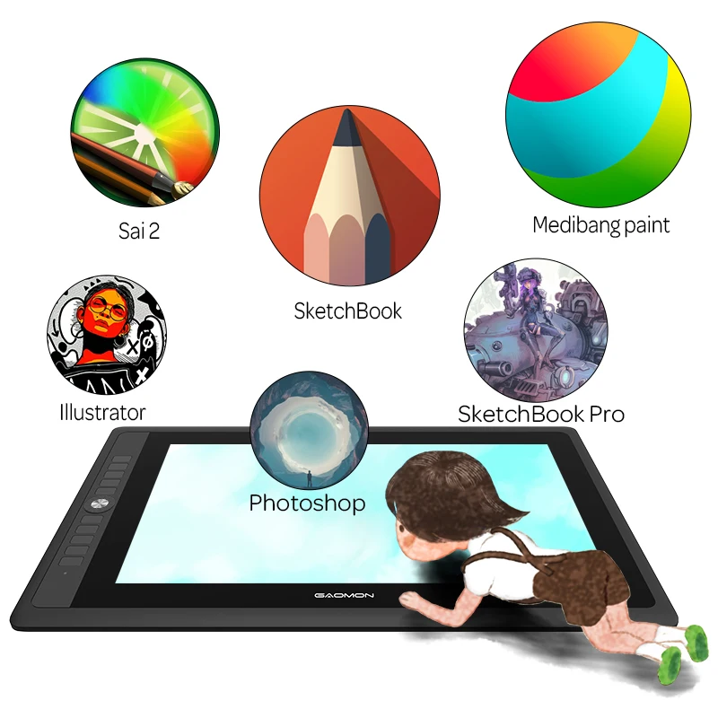 Work with laptops or desktops which run Windows 7/8/8.1 or above, Mac OS 10.12 or above; Compatible with most of major drawing software, Photoshop、SAI version 2、Illustrator、Krita、Firealpaca、Gimp、SketchBook Pro、MediBang Paint Pro, etc.