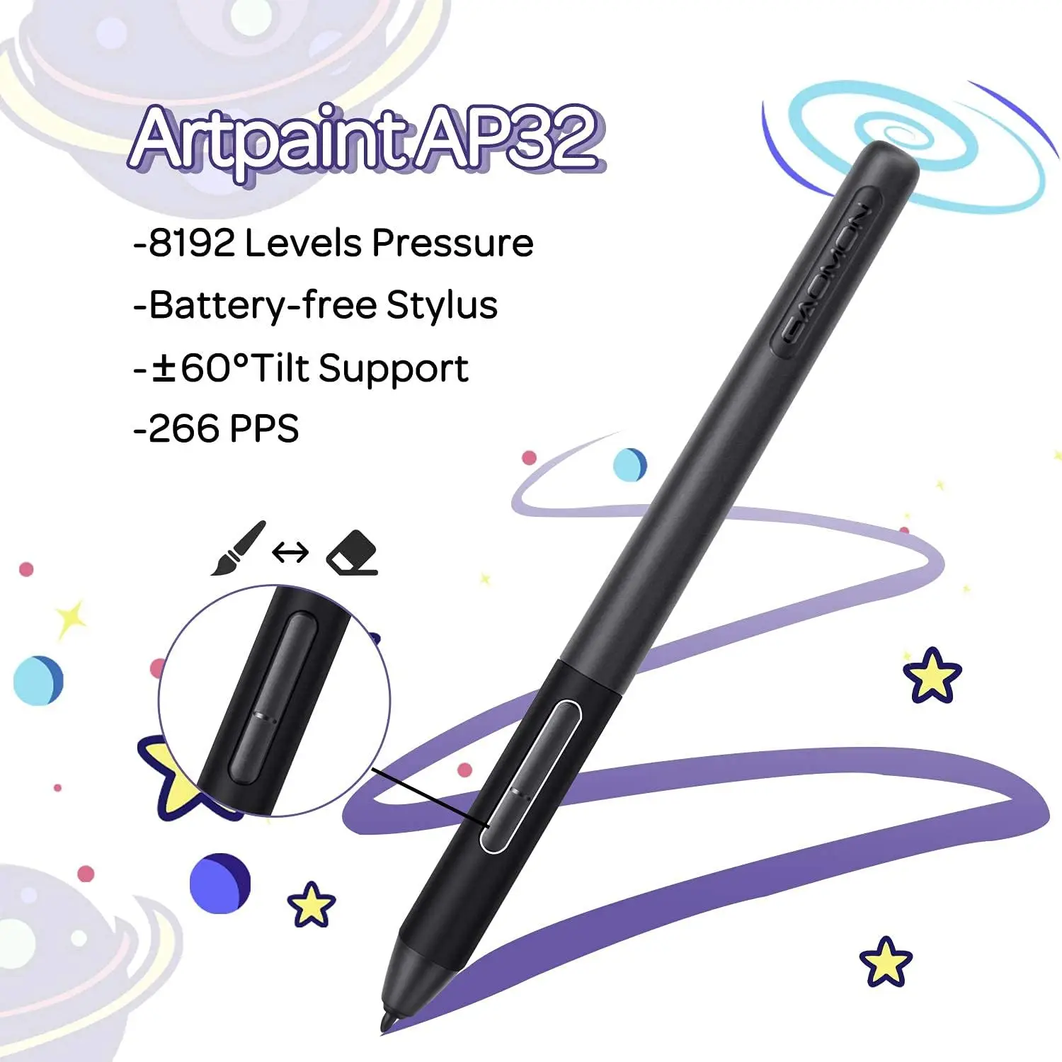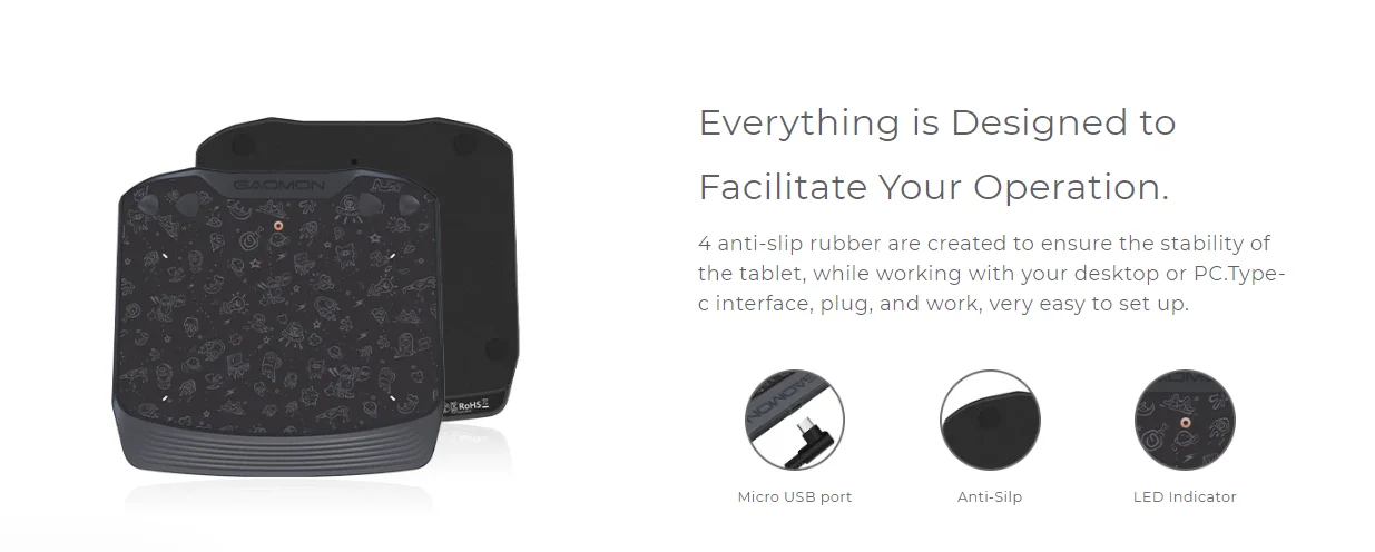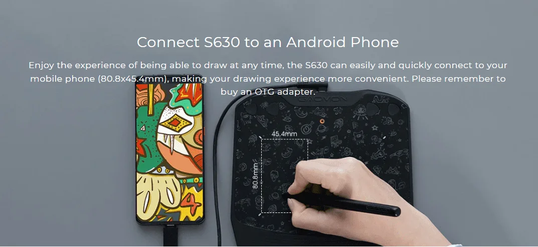 GAOMON S630 Graphics Tablet AP32 Passive Digital Pen for 2D/3D Animaton Drawing School Note Taking Working, Android OS Supported