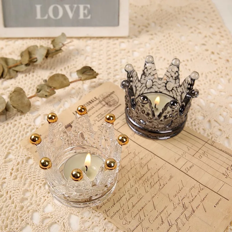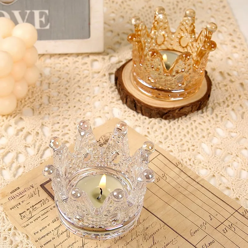 | Type of Ornaments | Transparent Glass Crown Candle Holder Art Desktop Ornaments |