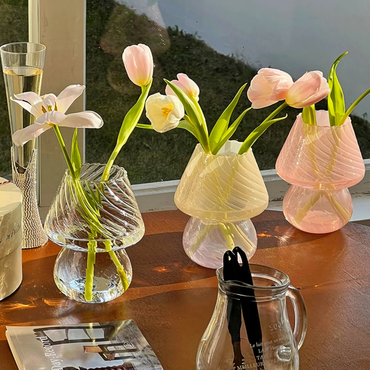 Glass Vase Home Decoration Lamp Flower Vase Mushroom Vases Decorative Vase Hydroponic Vase Tealight Holder Aesthetic Room Decor