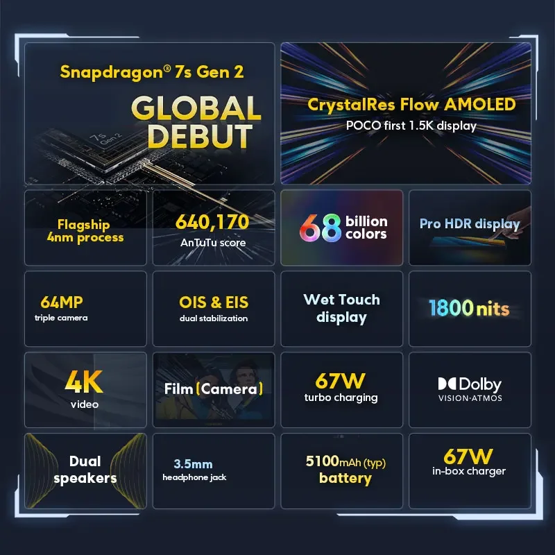 Global Version POCO X6 5G 64MP Camera with OIS 67W Charging NFC Snapdragon 7s Gen 2 Smartphone 120Hz Flow AMOLED Display