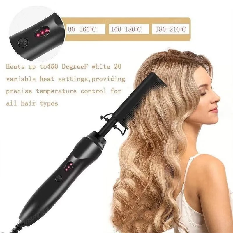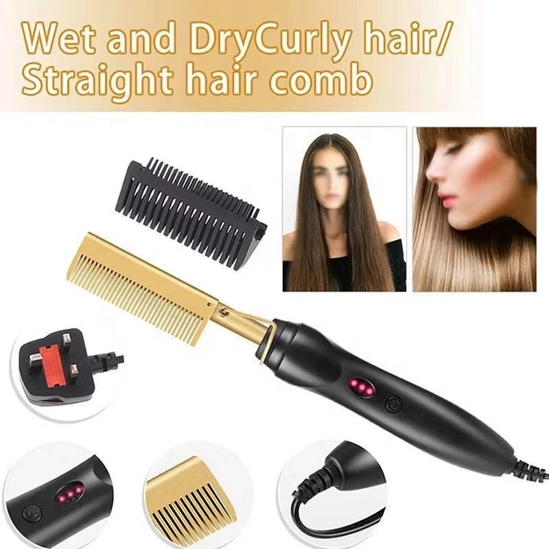 Gold Electric Hair Brushes for Straightener Comb,Copper Hot Comb Heat Pressing Curling/Straightener Styling Brush 220V for Women