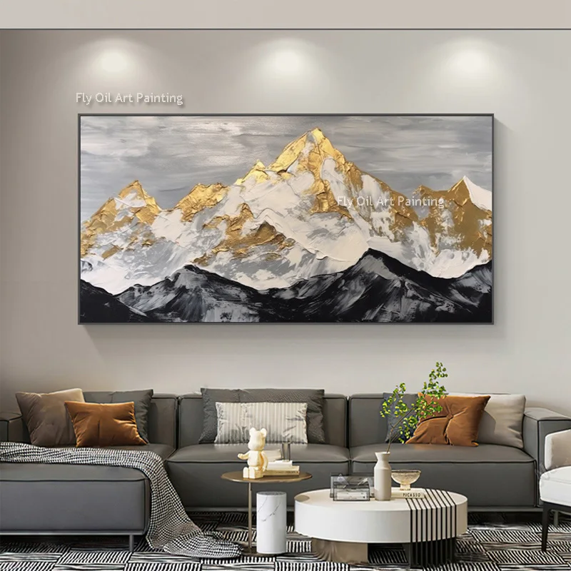 Golden Mountain Oil Painting Landscape Canvas Painting Living Room Art Handmade Large Wall Art Custom Painting Home Decor