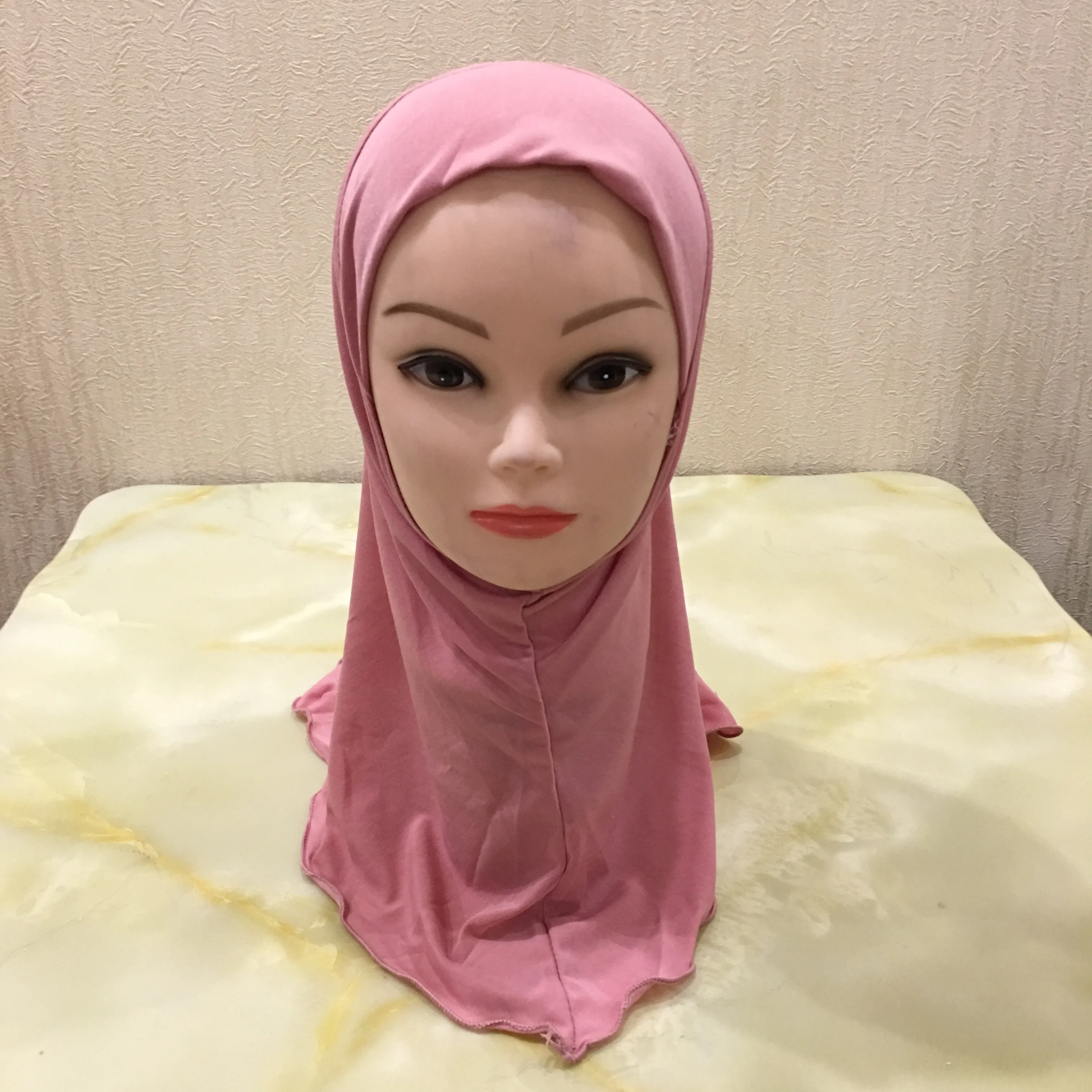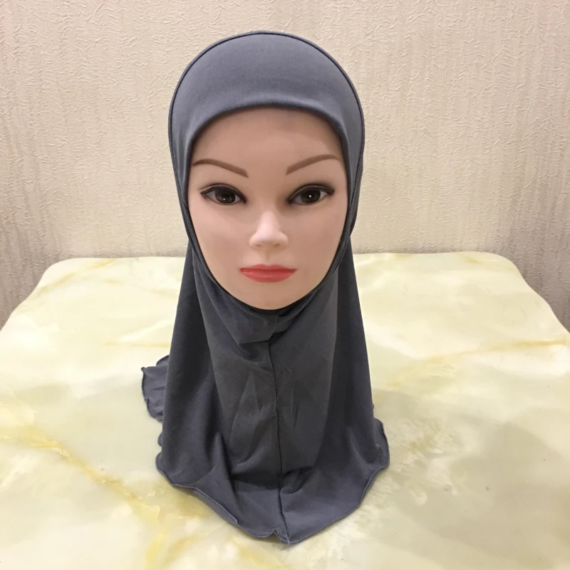 H061 plain small girl amira hijab fit 2-6 years old kids al-amira pull on islamic scarf headwrap headbands