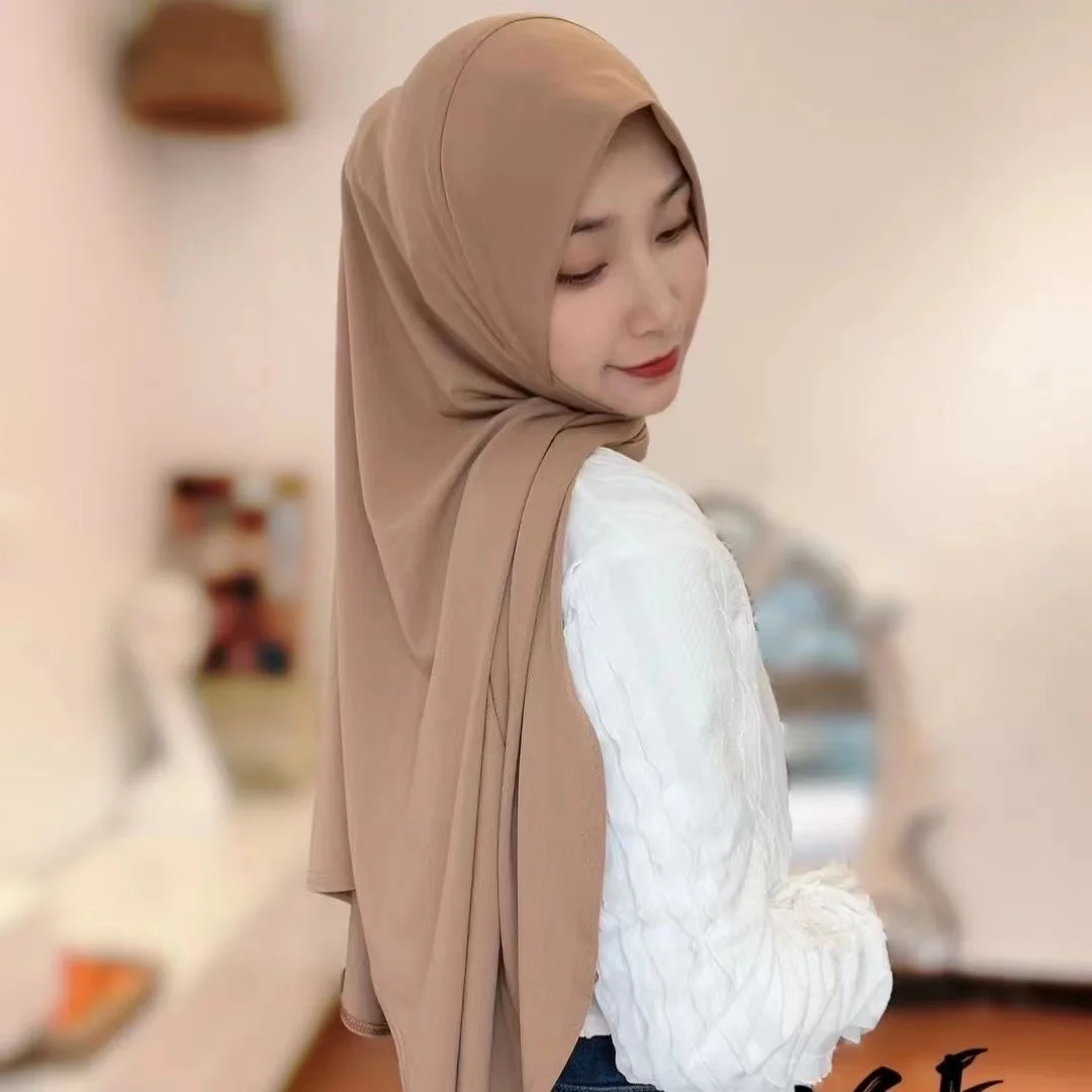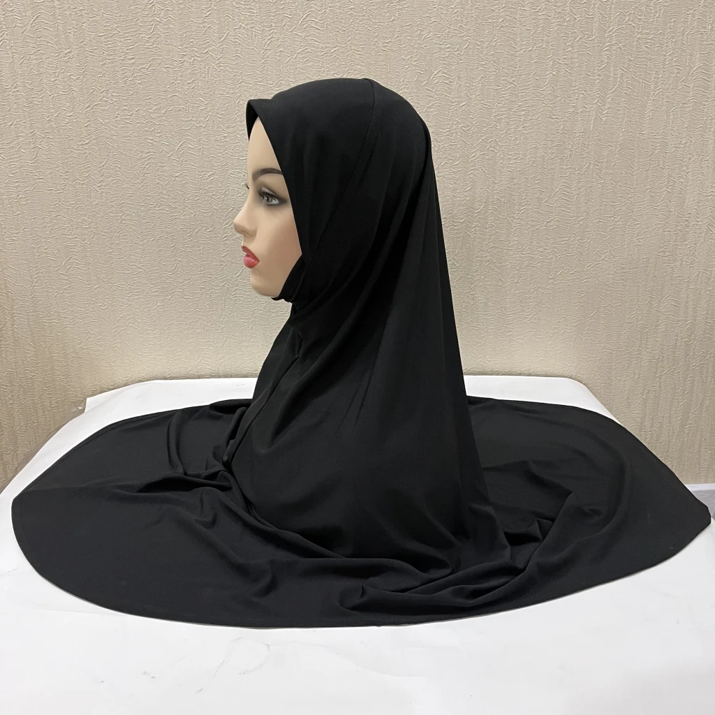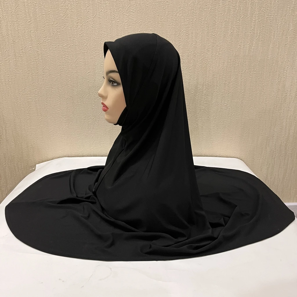H305 Plain XL size muslim hijab with chin part top quality extra size amira pull on islamic scarf hot sell headscarf