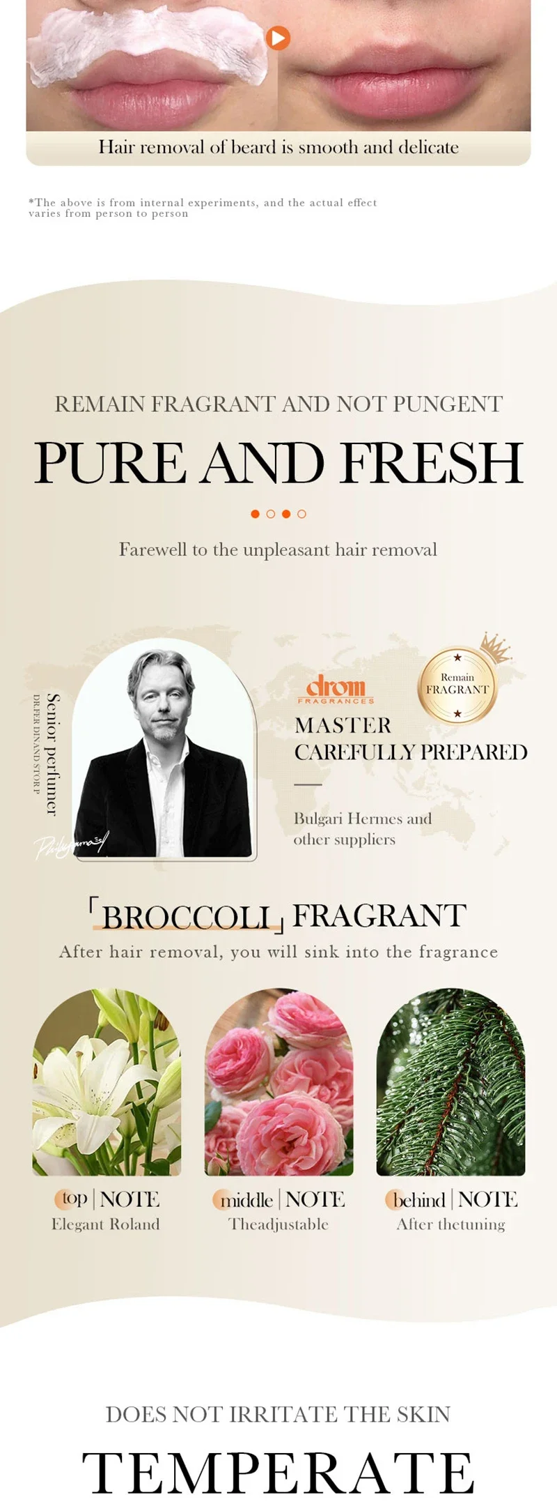 moisturizes and softens the hair roots, easily removes hair without damaging the skin, leaving the skin clean without black spots,and returns your smooth and tender skin with full charm.