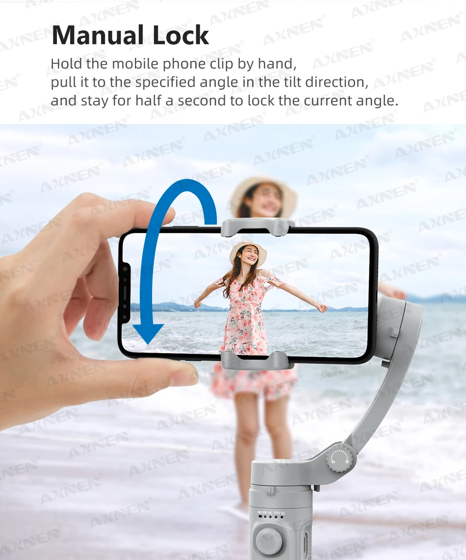 Hold the mobile phone clip by hand pull it to the specified angle in the tilt direction, and stay for half a second to lock the current angle.