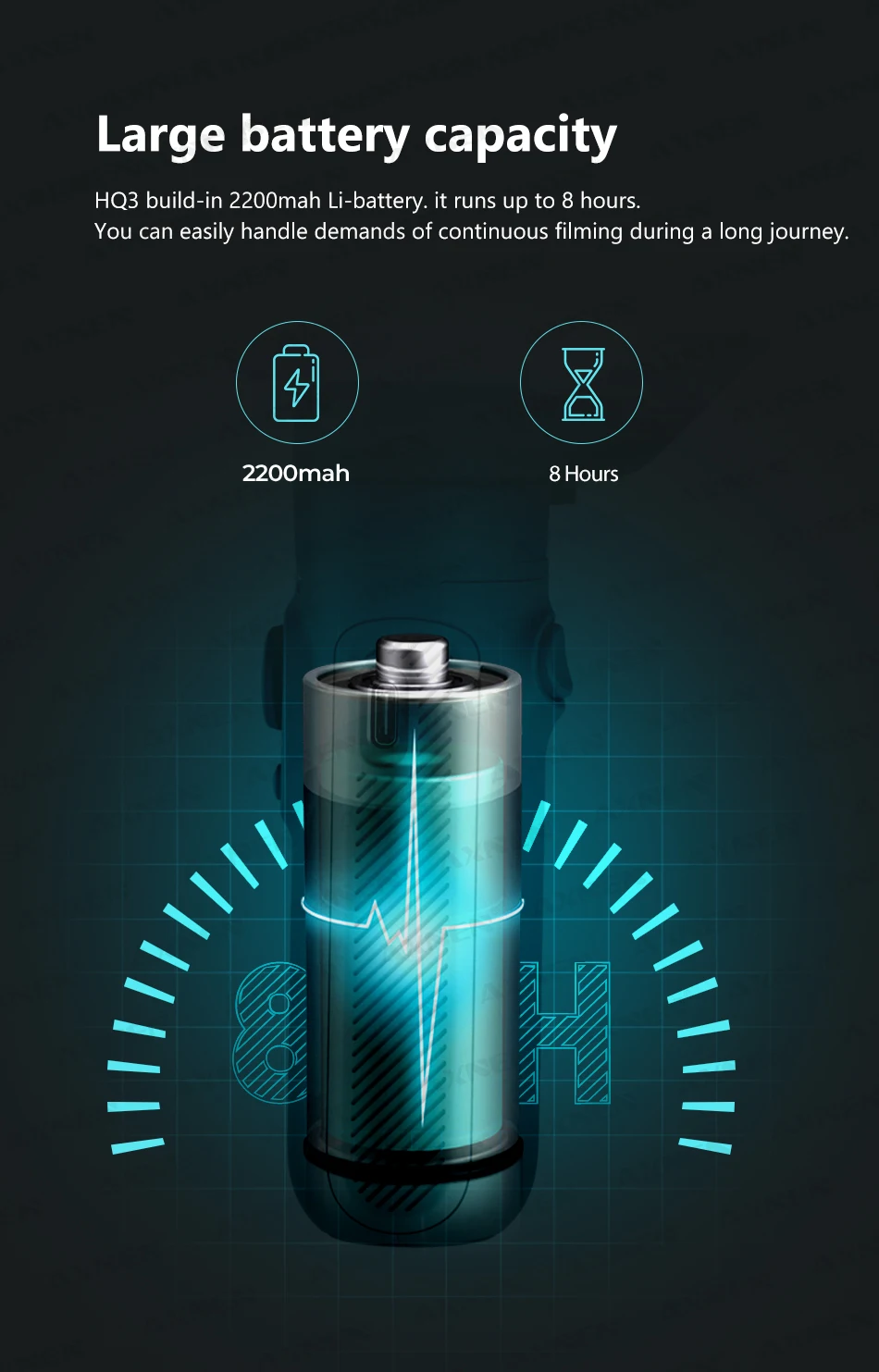 HQ3 build-in 2200mah Li-battery, it runs up to 8 hours.