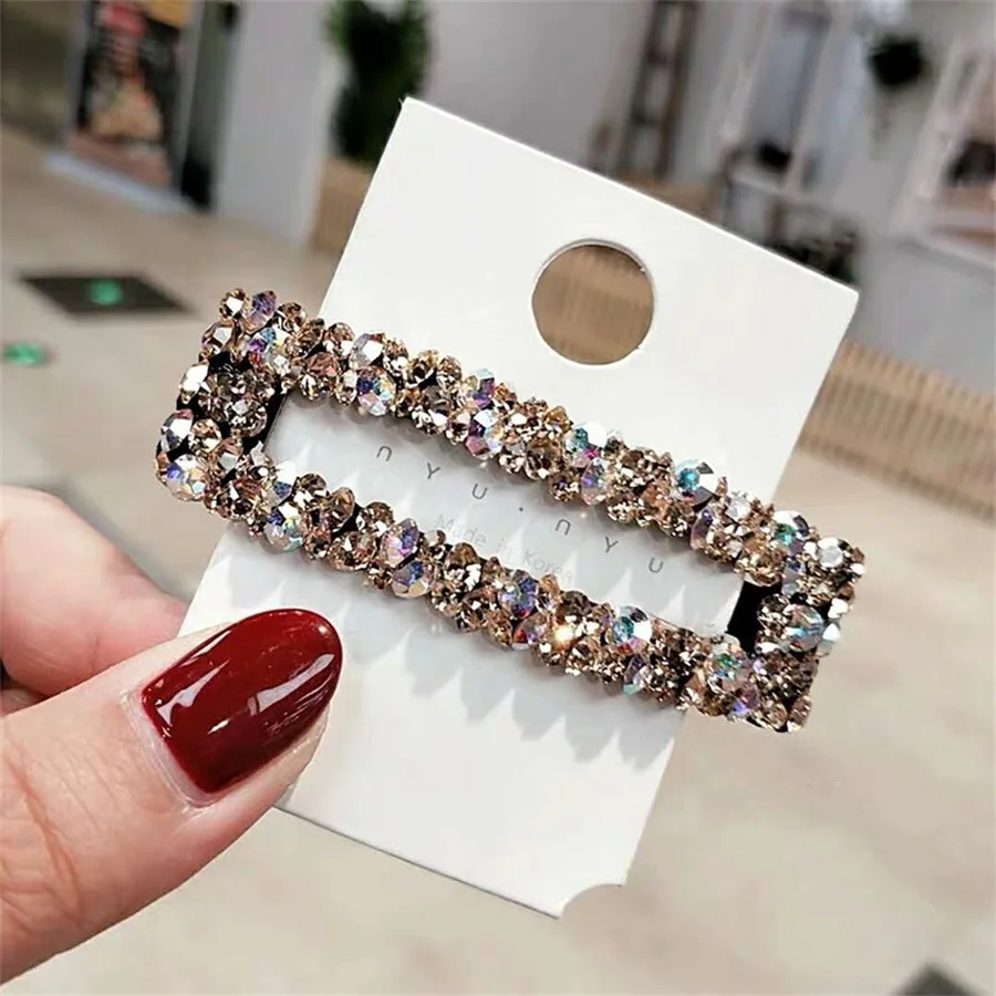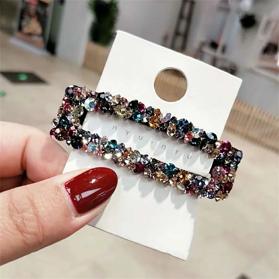 Handmade Rhinestone Hair Clips Pin For Women Fashion Geometric Flower Barrettes Headwear Girls Sweet Hairpins Hair Accessorie