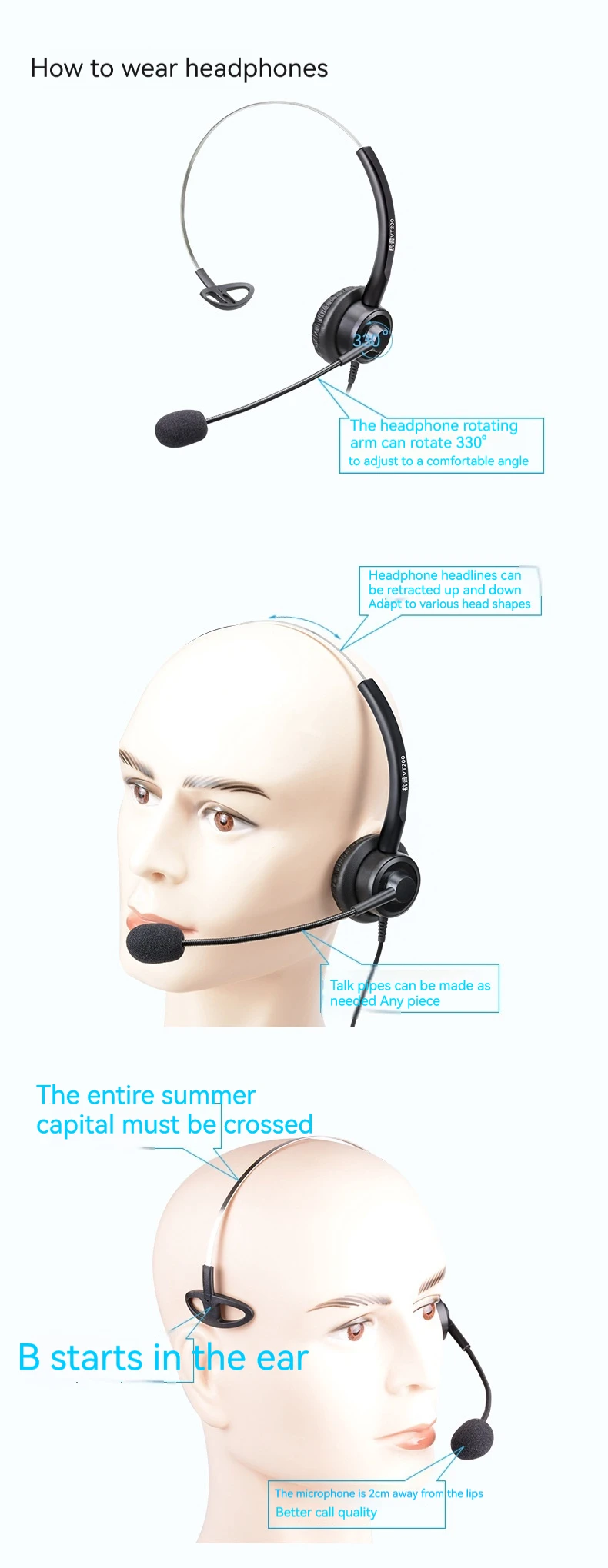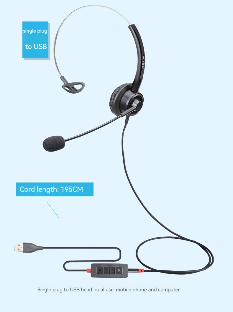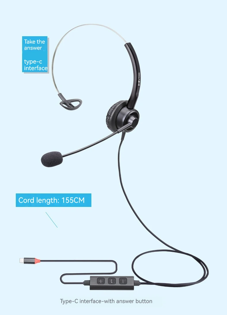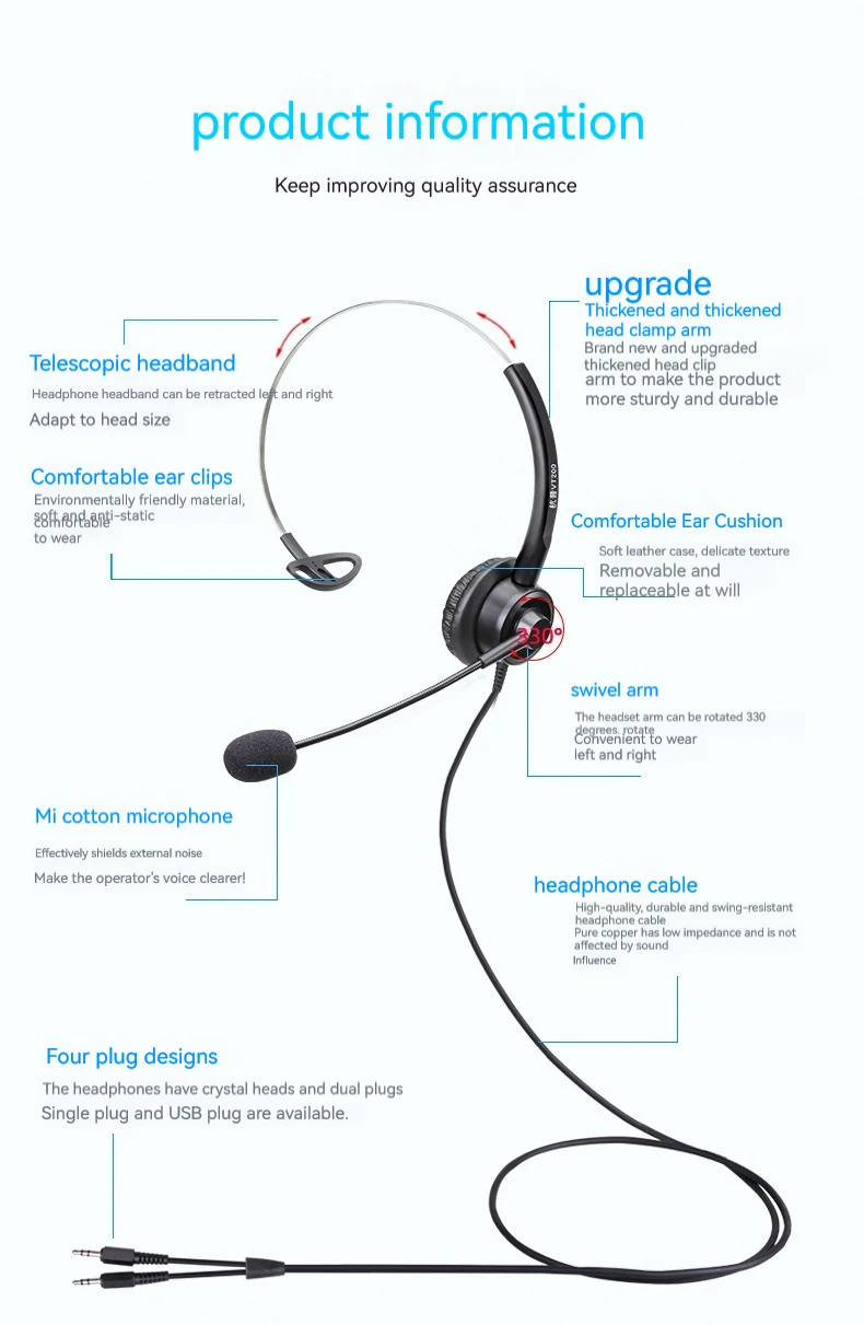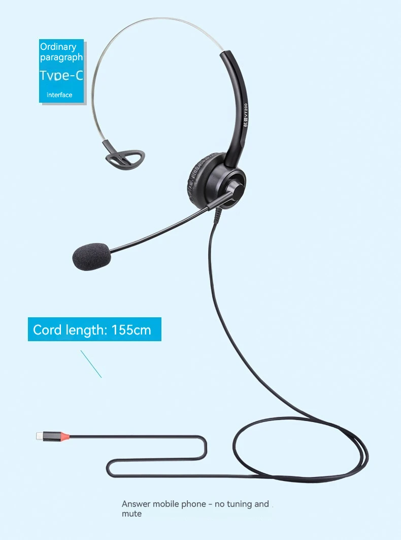 Hands-Free Call Center Office Noise Cancelling 3.5Mm Type C Usb Crystal Plug Headset Headphone Clear Sharp Voice Communication