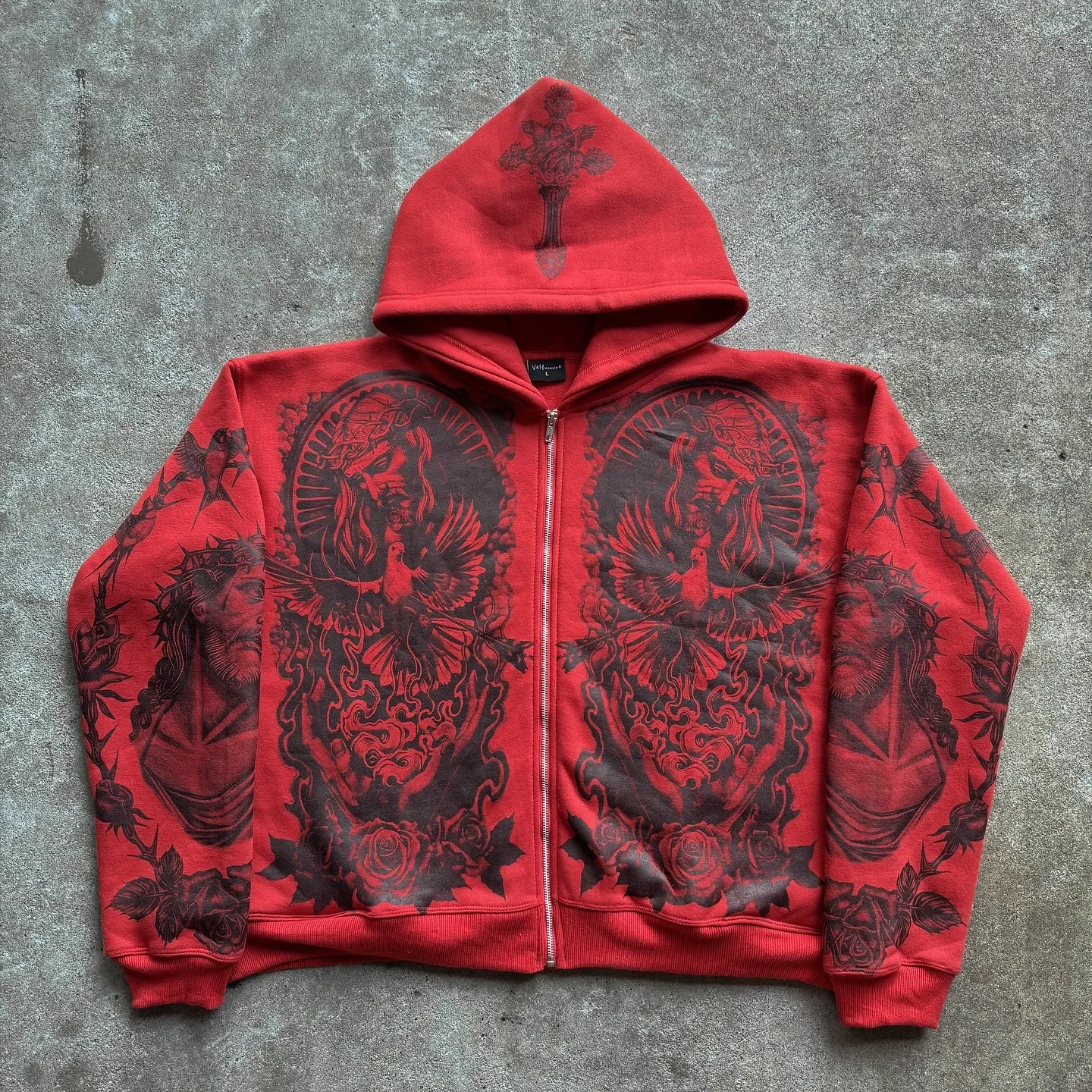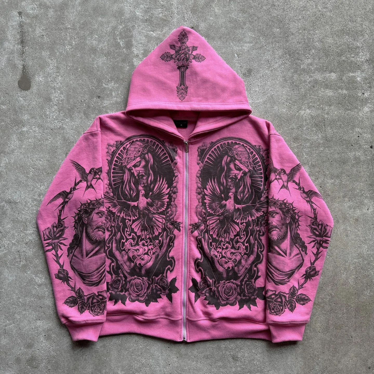Harajuku Forgive Me Collection Streetwear Mens Hoodies Oversized Zip Up Hoodie Sweatshirt Y2k Tops New Tracksuit Men Clothing