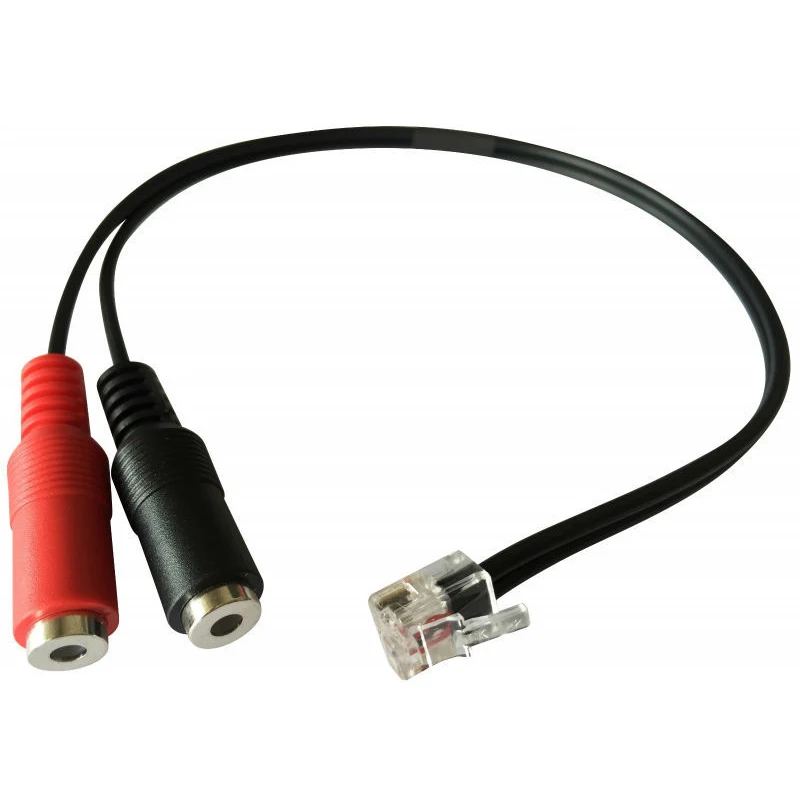 Convert two 3.5mm plugs to single 4P4C RJ9/RJ10 headset plug