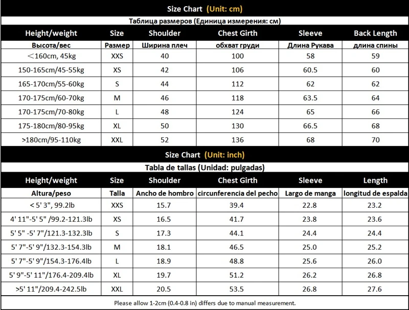 -Please select your size based on your height and weight (shoulder and chest measurement) according to size chart.