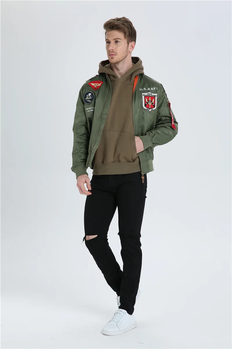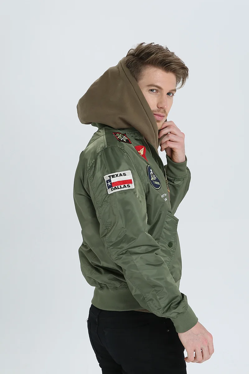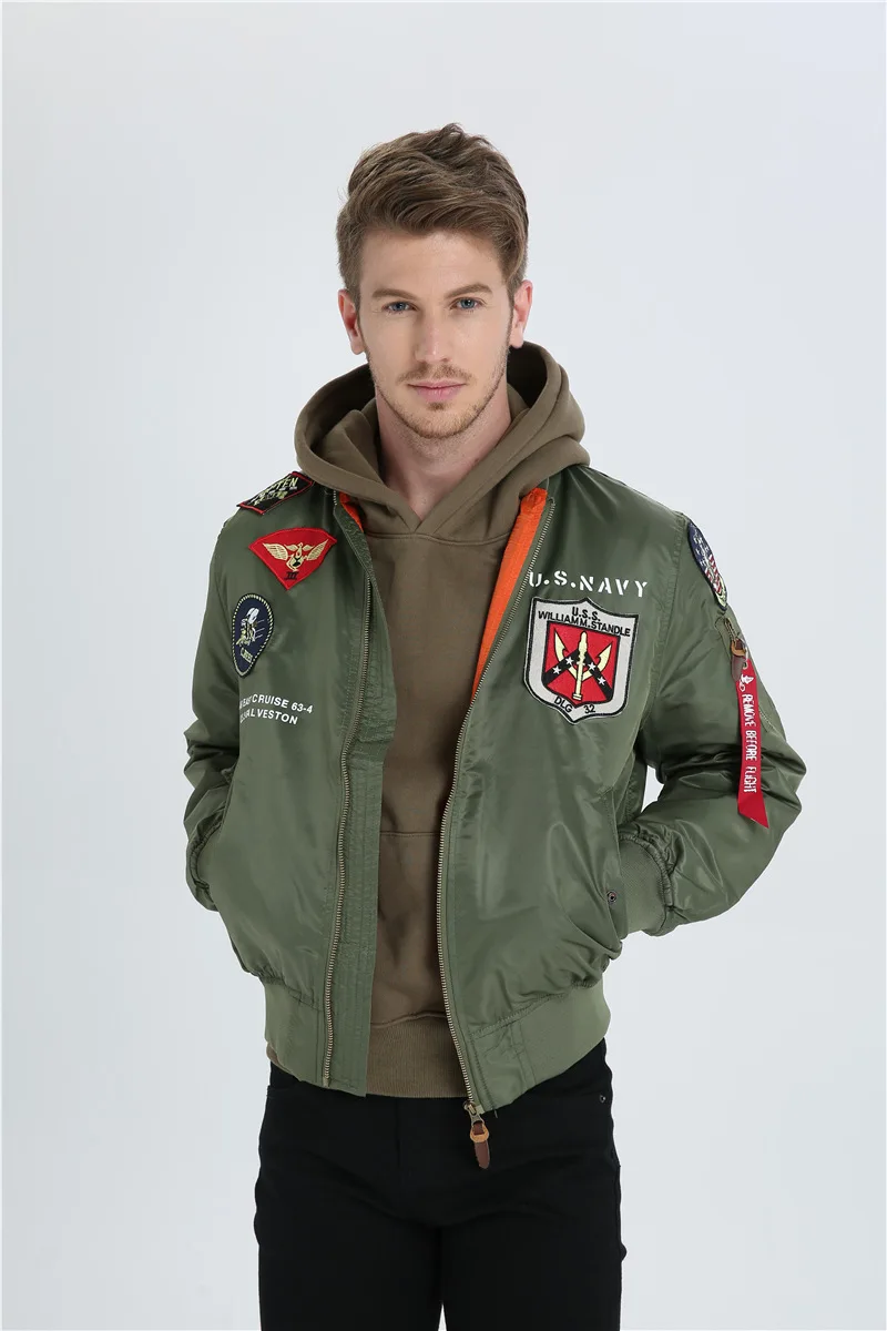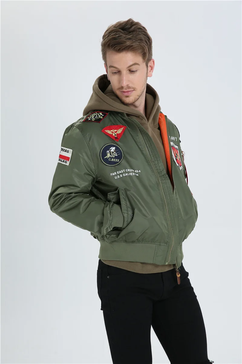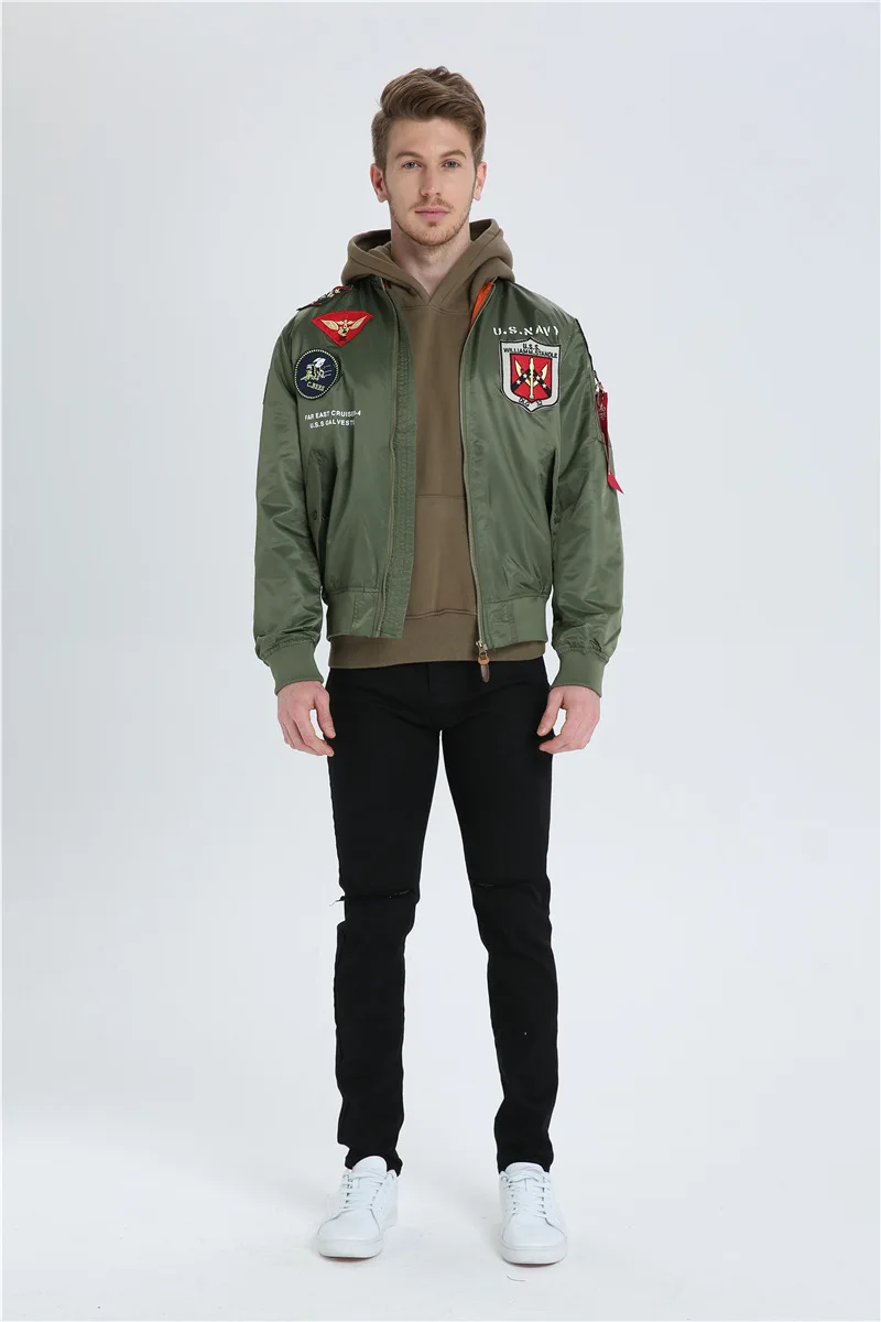 High Quality Military Fashion Casual Boy Youth Lightweight Top Gun Patch Embriodey Streetwear Ma1 Satin Flight Bomber Jacket Men