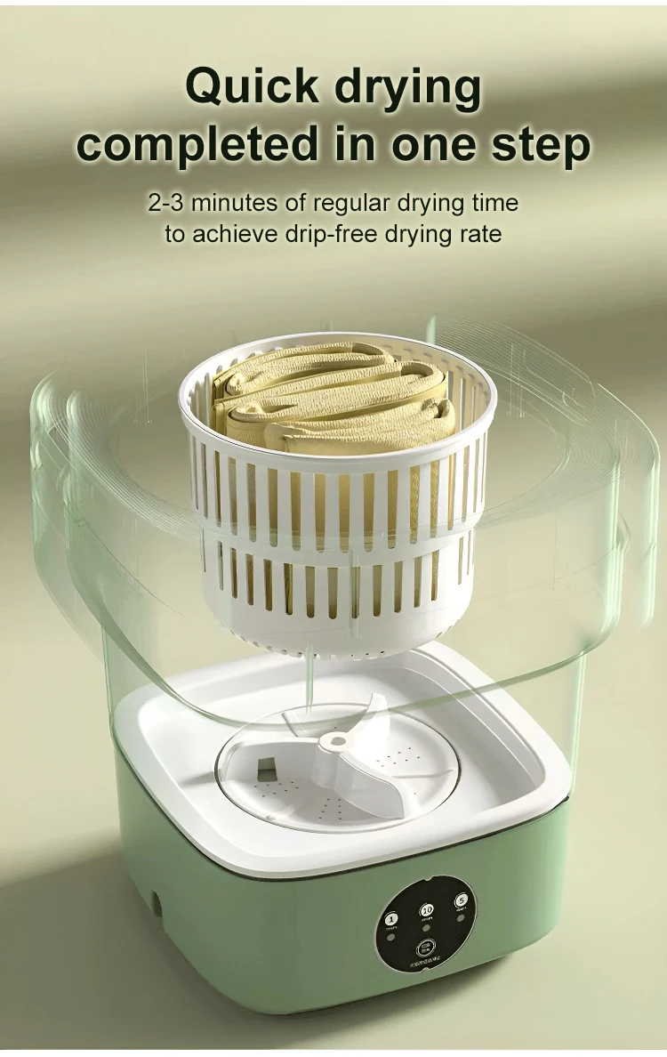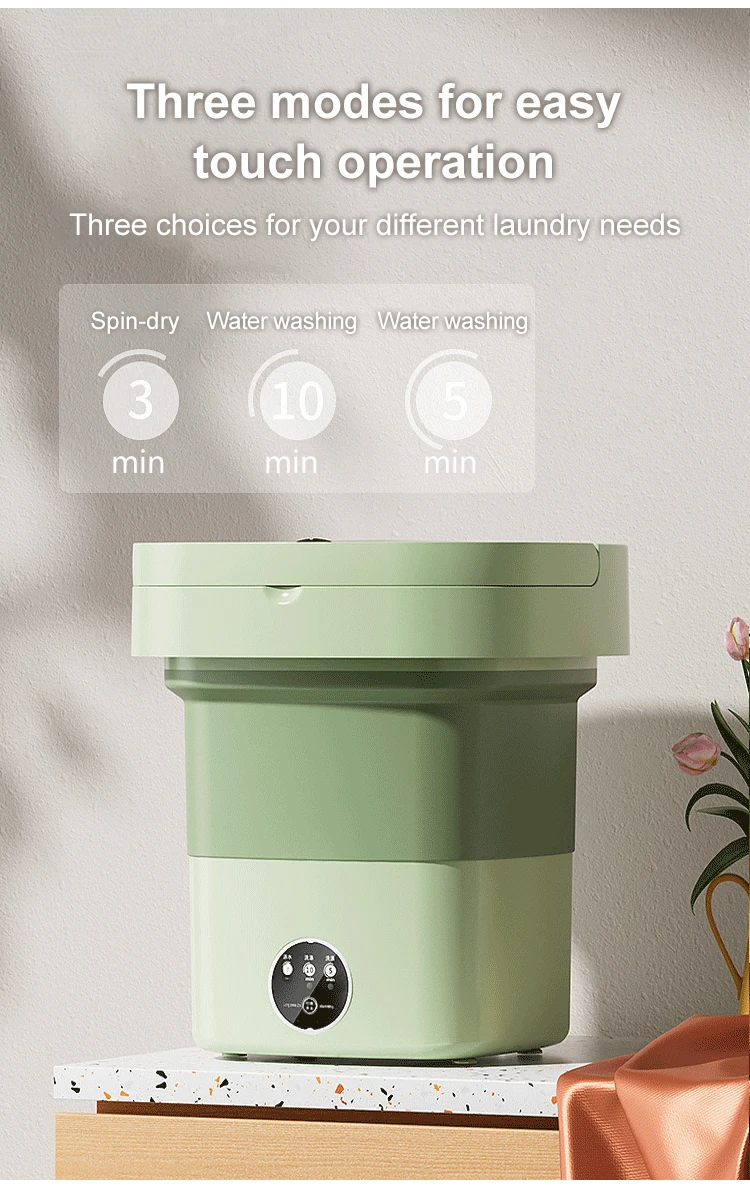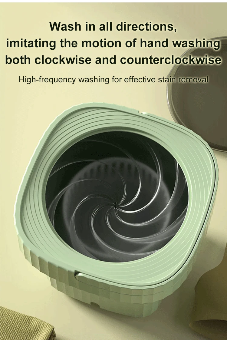【Folding Design】This small portable washing machine cleverly adopts a foldable design,  Easy to store, it can be easily placed between shelves or under the bed without taking up too much space in your home.
