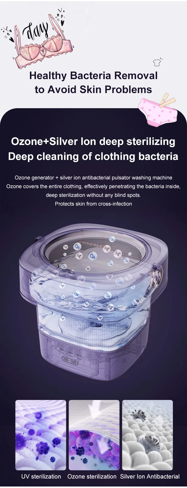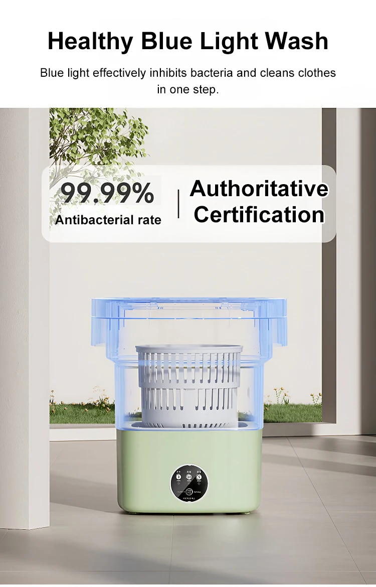 【Powerful decontamination】This mini washing machine provides all-round imitation hand scrubbing, suitable washing speed, and strong decontamination. With blue light, it is very suitable for washing small clothes such as baby clothes, underwear or socks, keeping you and your family healthy!