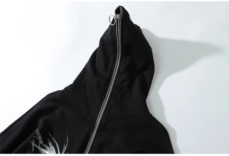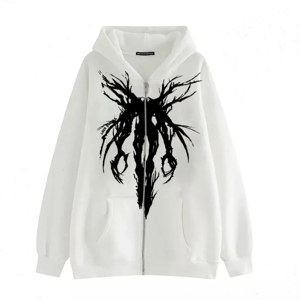 Hoodies Anime Loose Women’s Sweatshirt 2024 Printing Zipper Men’s Hooded O-Neck Female Jacket Zip Up Hoody Hoodie Black Y2K Top