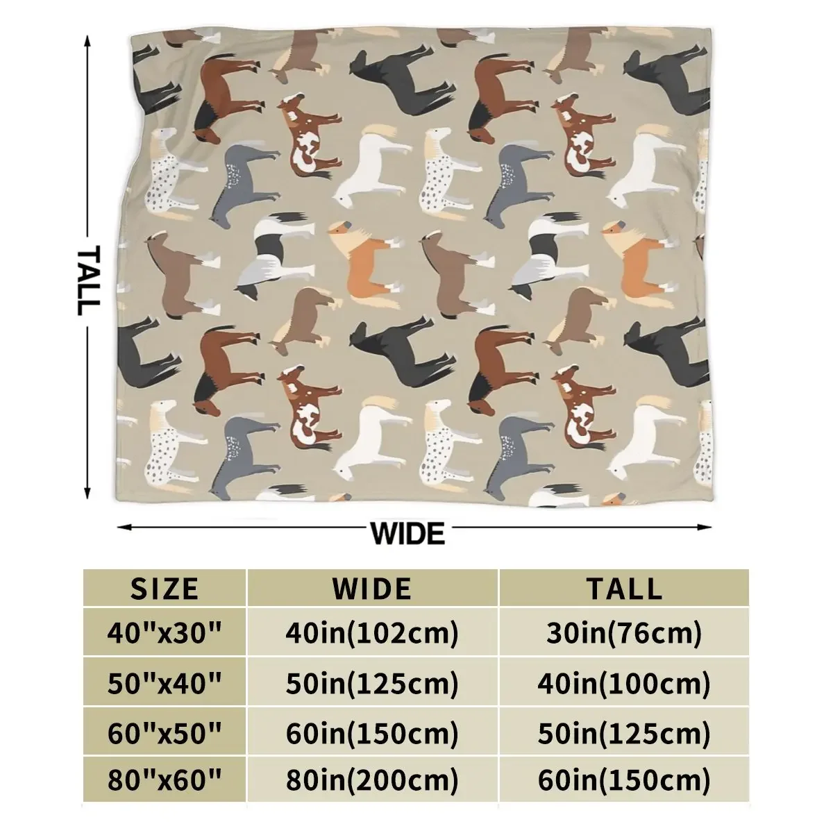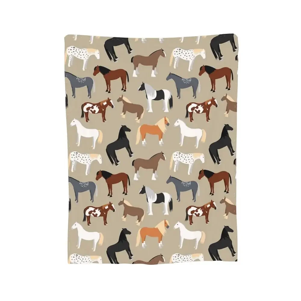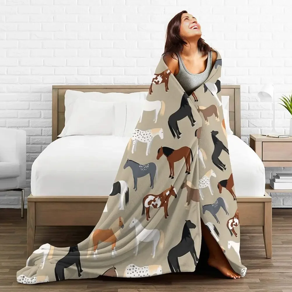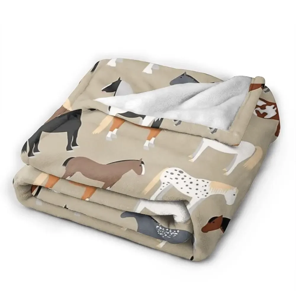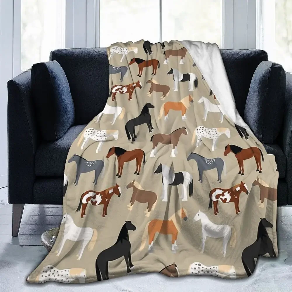 Horse Breeds Pattern Blanket Soft Warm Flannel Throw Blanket Bedspread for Bed Living room Picnic Travel Home Sofa
