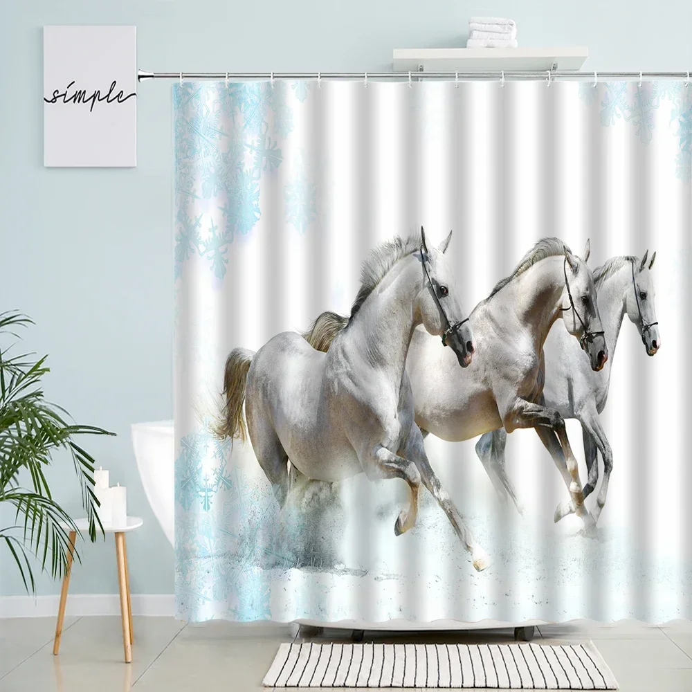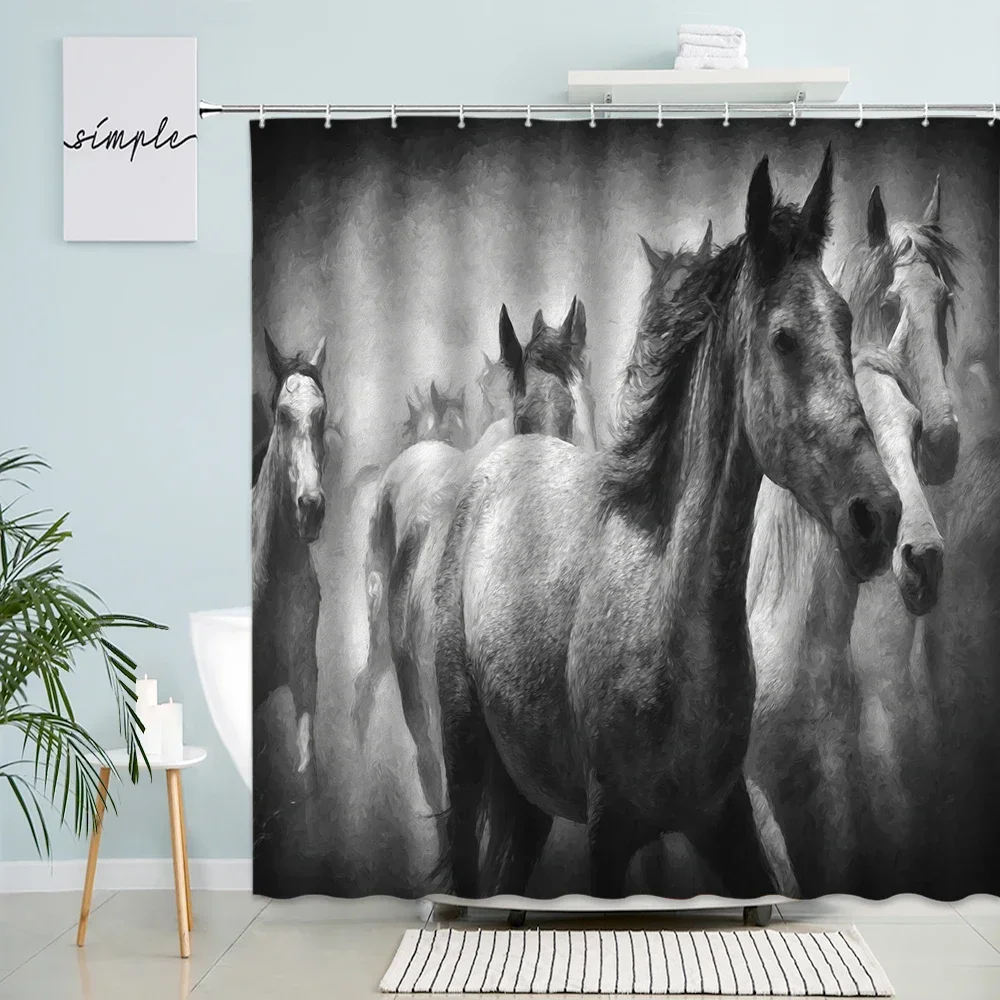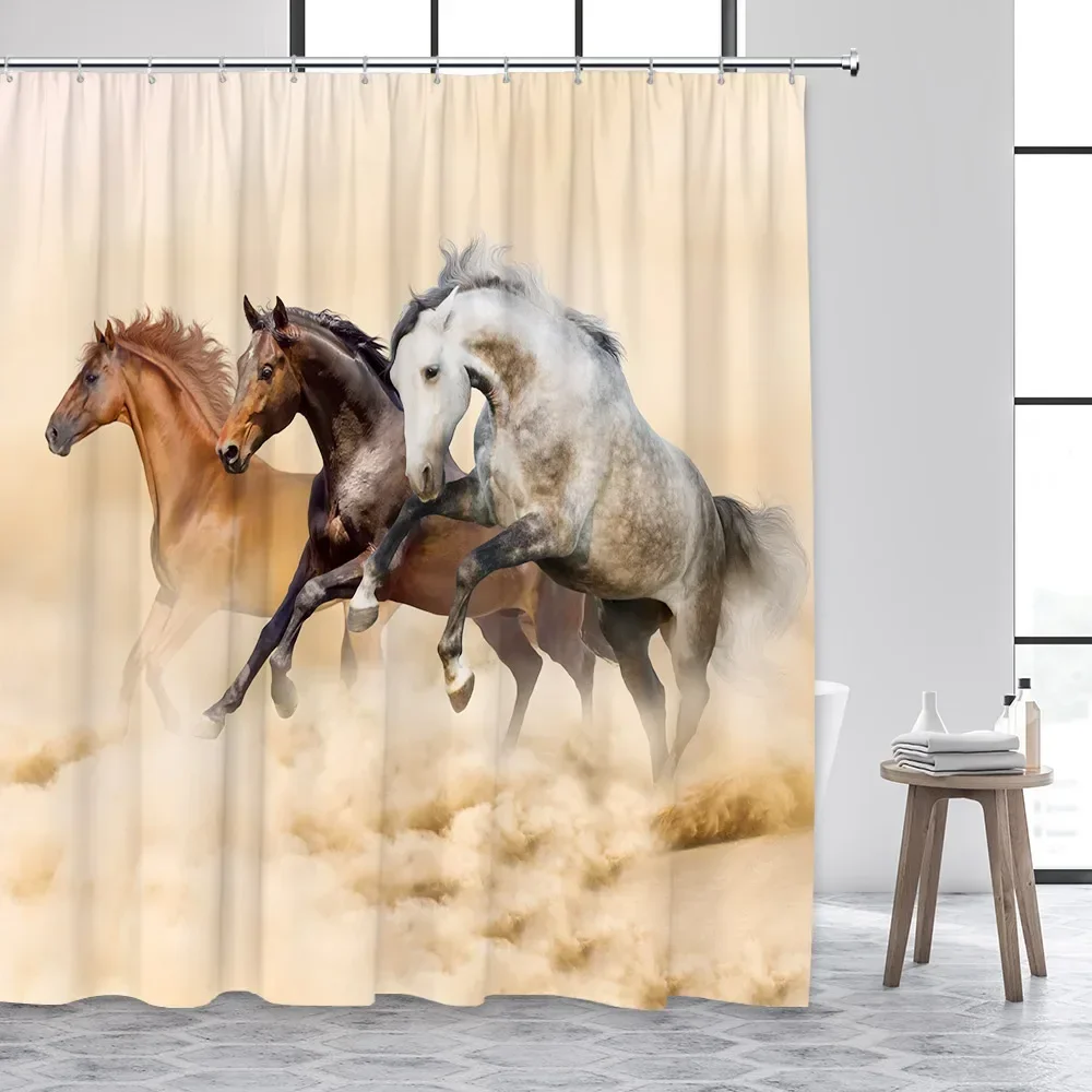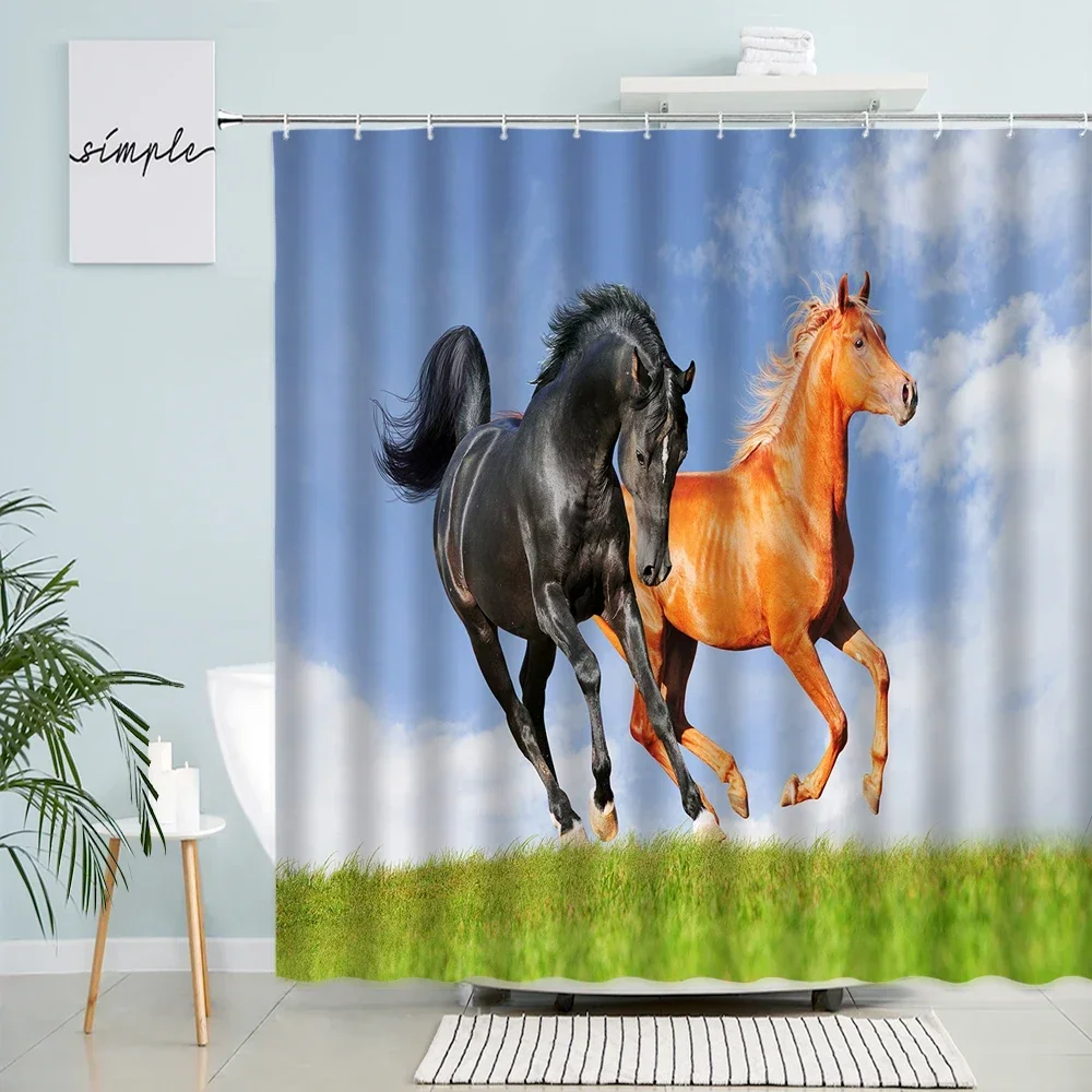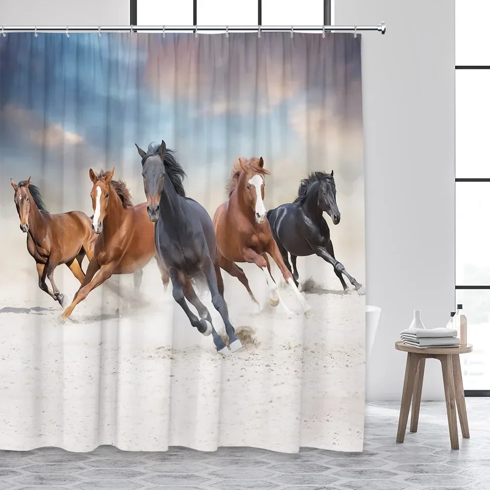 Horse Shower Curtains Beach Farm Animals Modern Polyester Fabric Home Bathtub Decor Bathroom Curtain Sets With Hooks Brown Black
