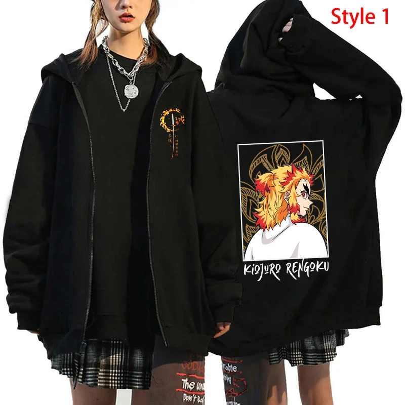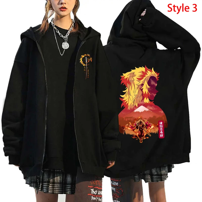 Hot Anime Rengoku Kyoujurou Printing Zipper Coat Clothes Fashion Loose Hoodie Men Women Sweatshirt Zipper Streetwear Hoodies