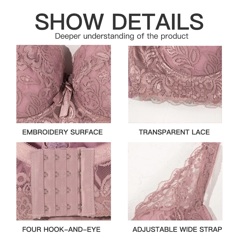 4. Dlicate lace – beautiful floral lace on cup surface and wings makes our breast and back gorgeous;