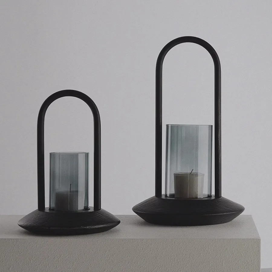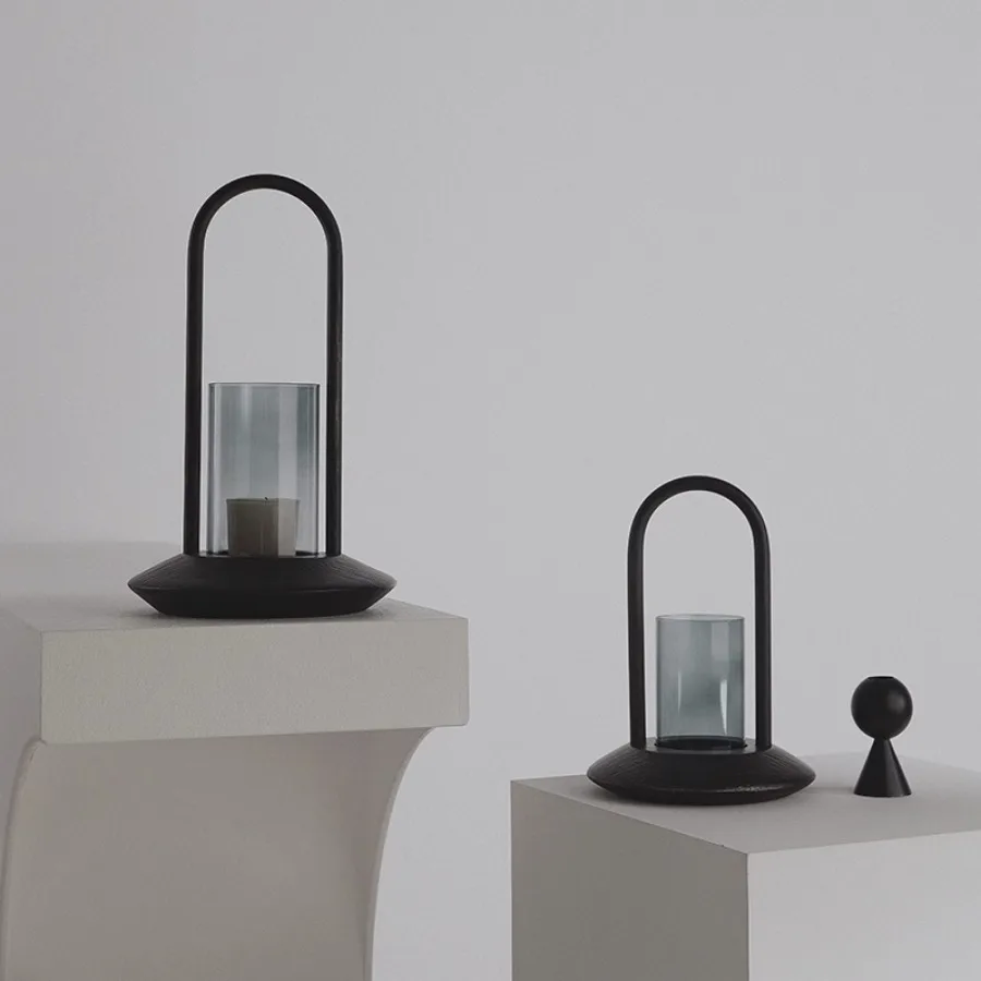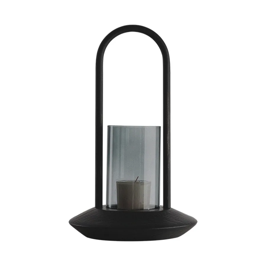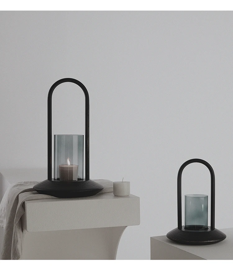 House Candle Holder Handle Outdoor Party Iron Metal Candle Holder Stand Glass Retro Nordic Outdoor Black Candelabros Room Decor