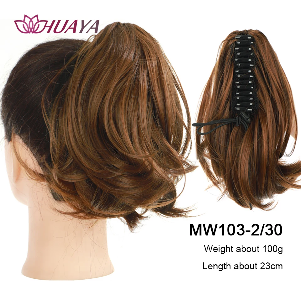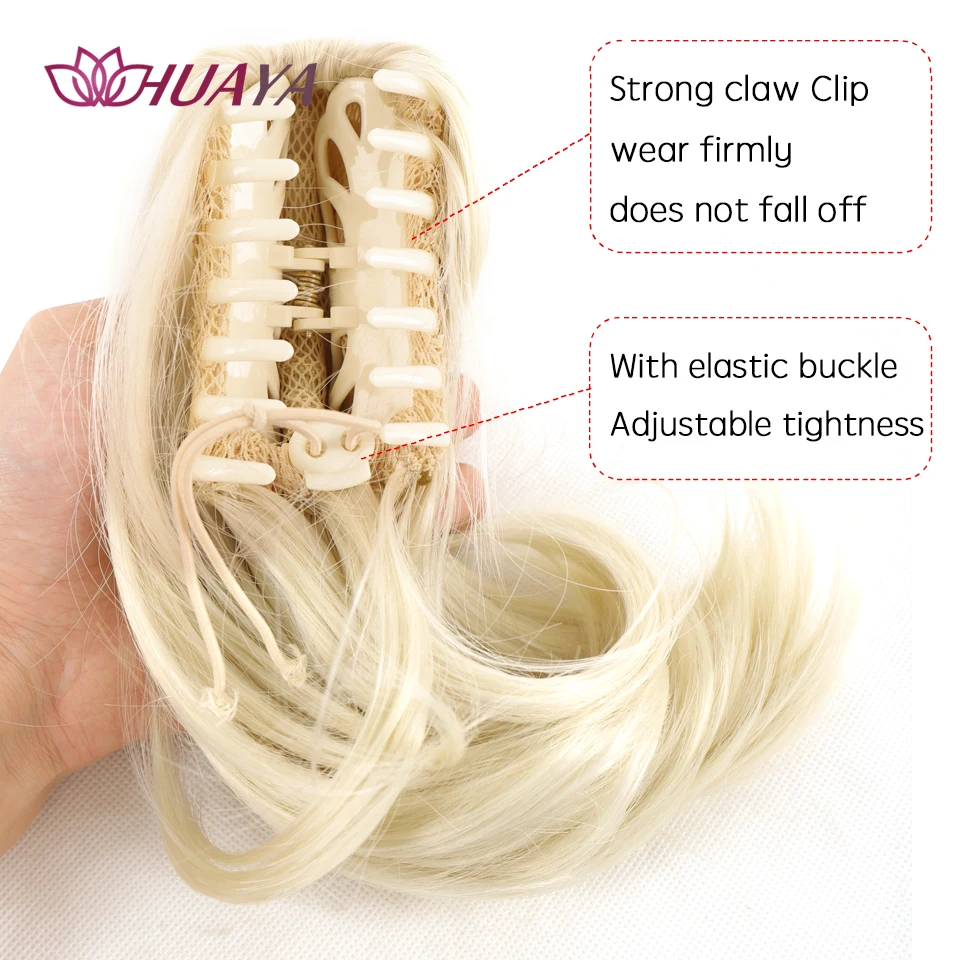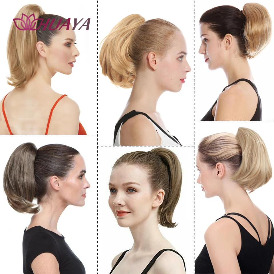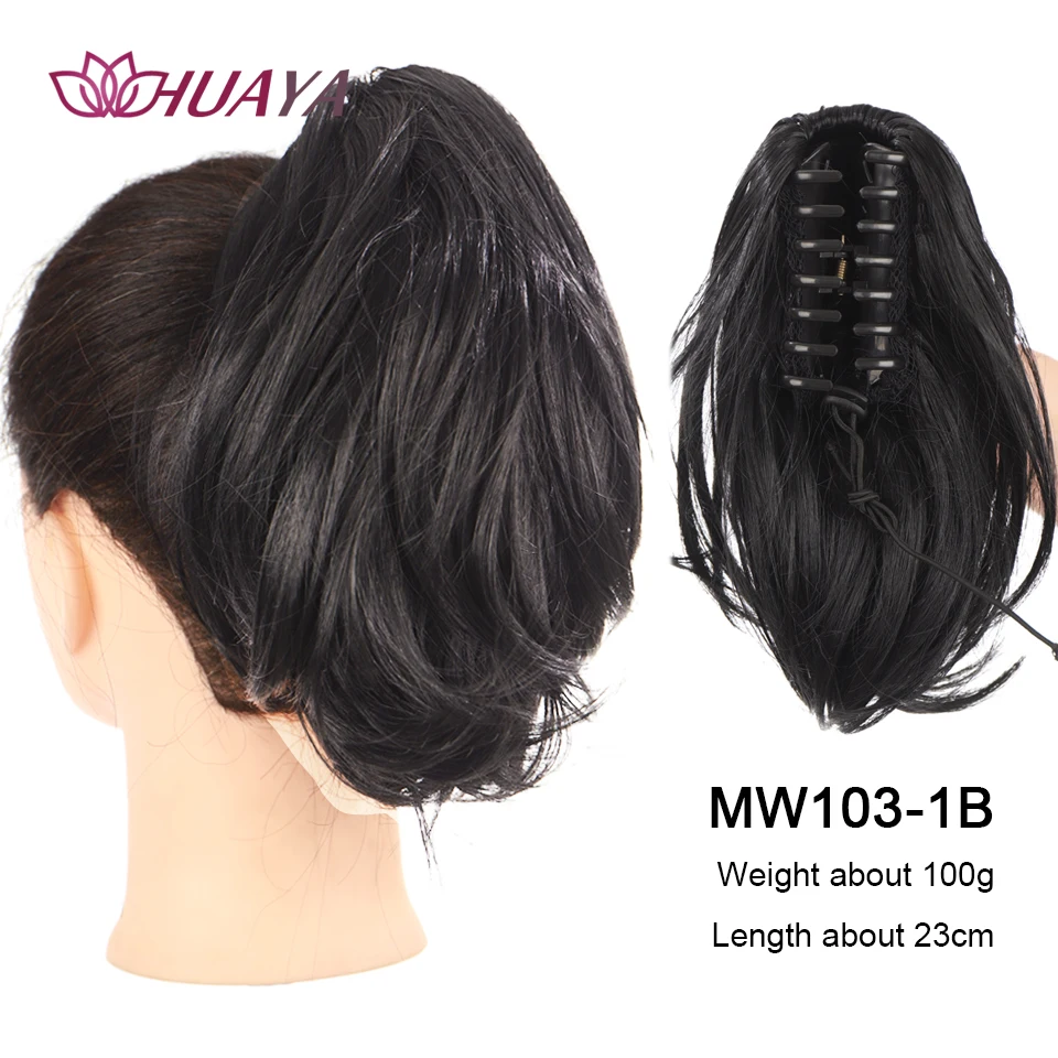 HUAYA Synthetic Claw Clip Ponytail Hair Extensions Short Straight Natural Tail False Hair For Women Horse Tail Black Hairpiece