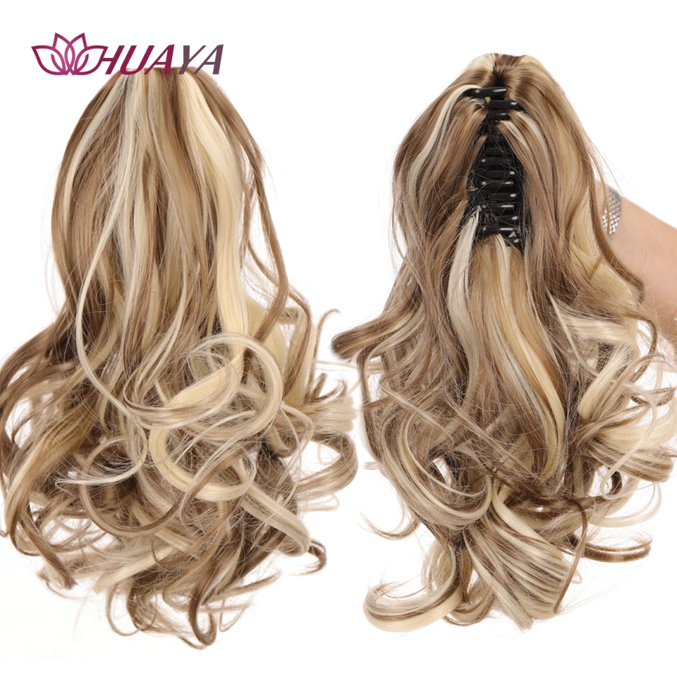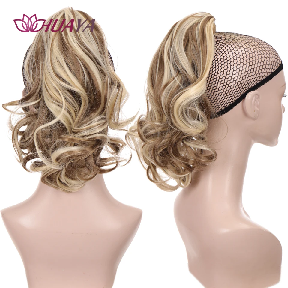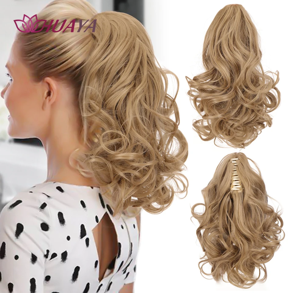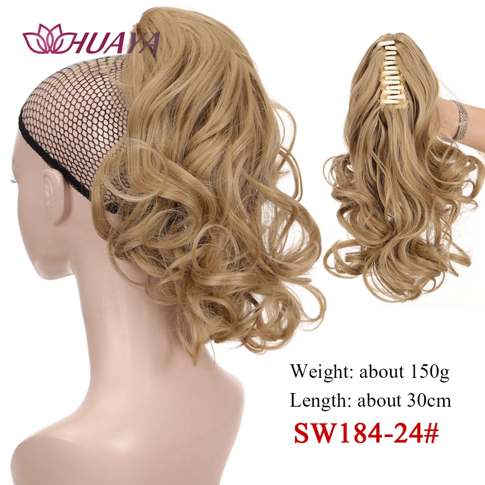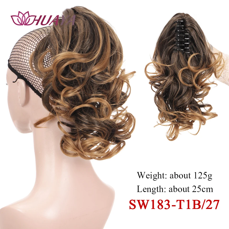 HUAYA Synthetic Claw Clip Ponytail Hair Extensions Short Straight Natural Tail False Hair For Women Horse Tail Black Hairpiece