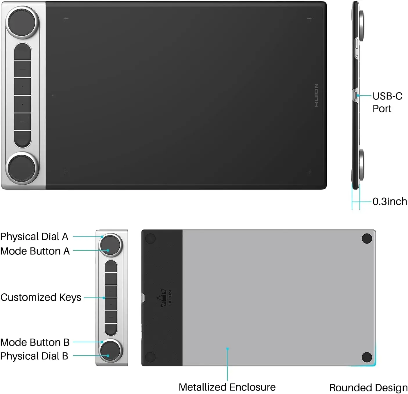All-New Design: Thanks to the symmetrical design, Inspiroy Dial 2 is perfectly suitable for both right-handed and left-handed users. 10.5 x 6.5″ large active area is ideal for use with large or multiple monitors. 0.3″ ultra-thin design helps to reduce the fatigue of high-intensity creative work.