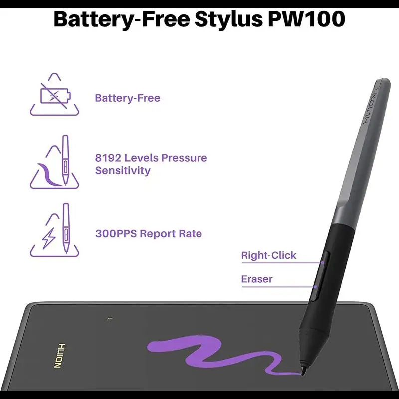 Battery-Free Electromagnetic Resonance , the EMR technology frees your pen from battery and charge. With 10mm Sensing Heigh, two programmable buttons, convenient and easy to use.