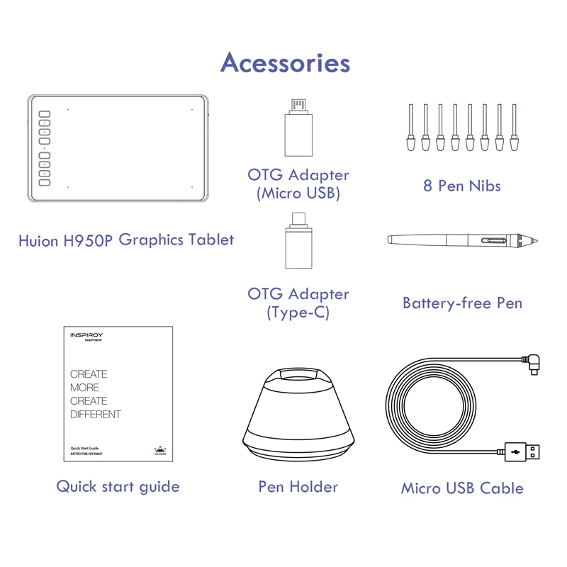 The pen pressure sensitivity of H950P is up to 8192 levels, which means you are free to drawn the lines you like. Also, it comes with 233PPS report rate and 5080 LPI high resolution, offering you much higher quality images.