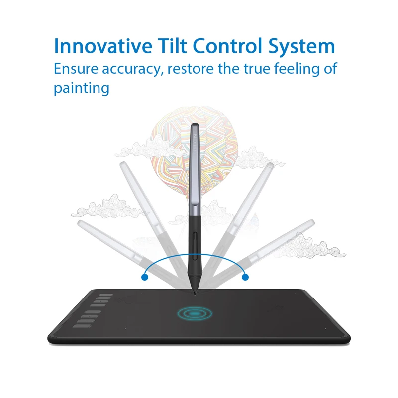 Equipped with a branded battery-free pen, no need to charge your pen any more. Getting rid of the charging problem, you are free to create now! Enjoy tilt function when you are creating.