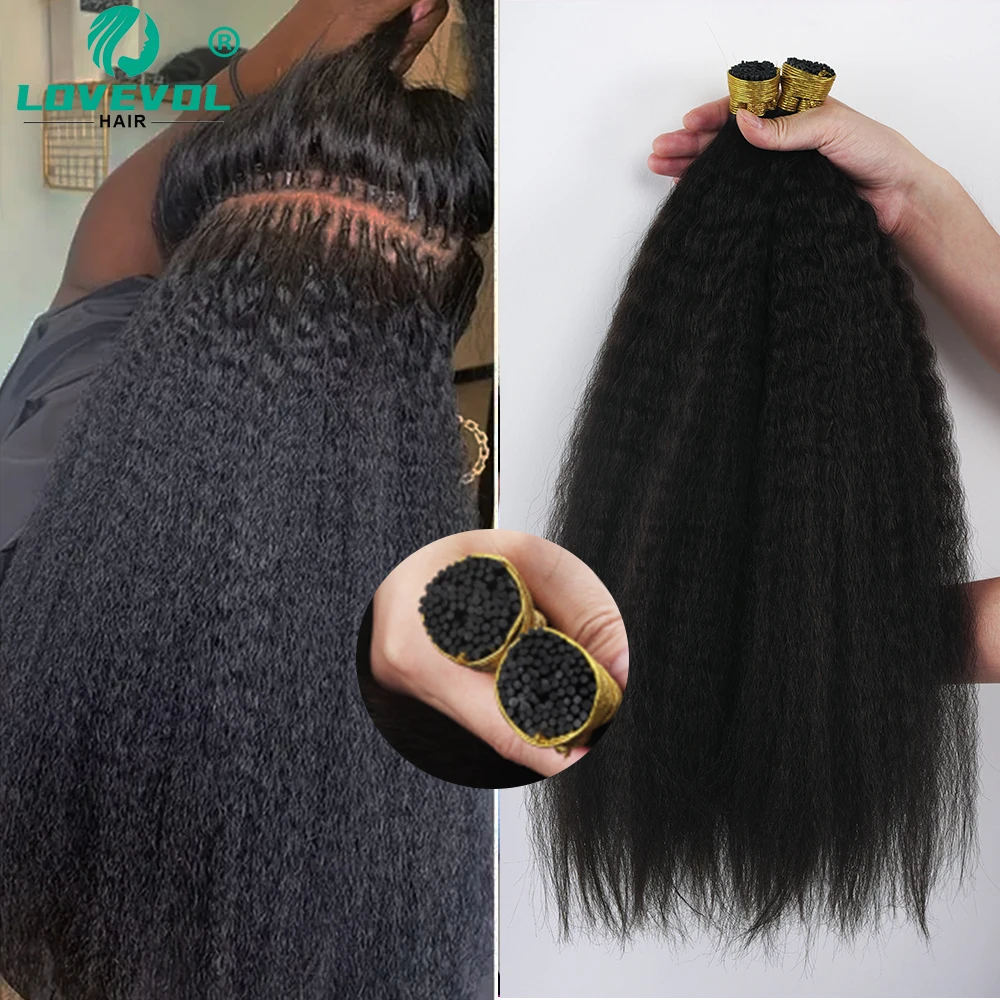 I Tip Hair Extensions Human Hair Kinky Straight Hair Extensions Natural Color Fusion Hair Extensions 100G/per Yaki Stright Hair