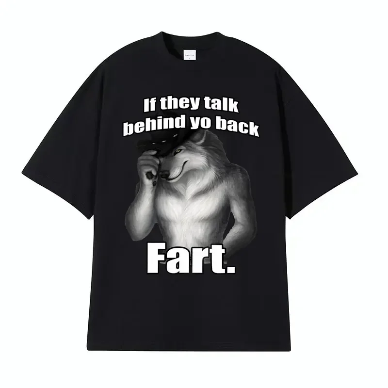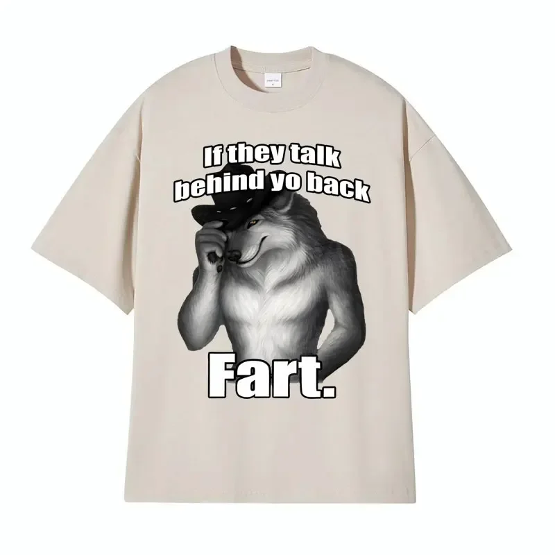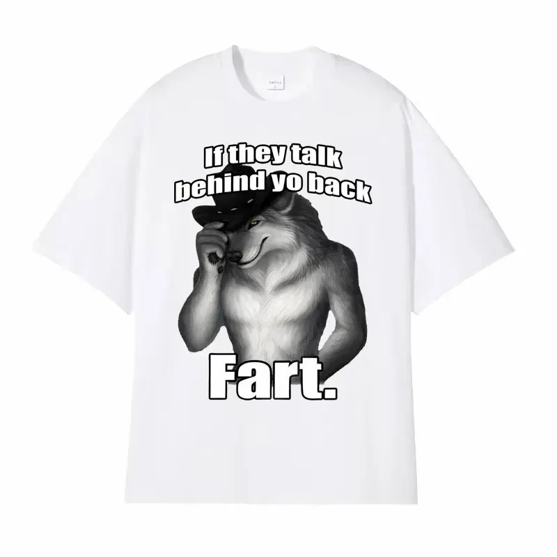 If They Talk Behind Yo Back Fart Wolf Literally Me Funny Meme Emo T-shirt Men’s Clothing Harajuku Retro Oversized Cotton T Shirt