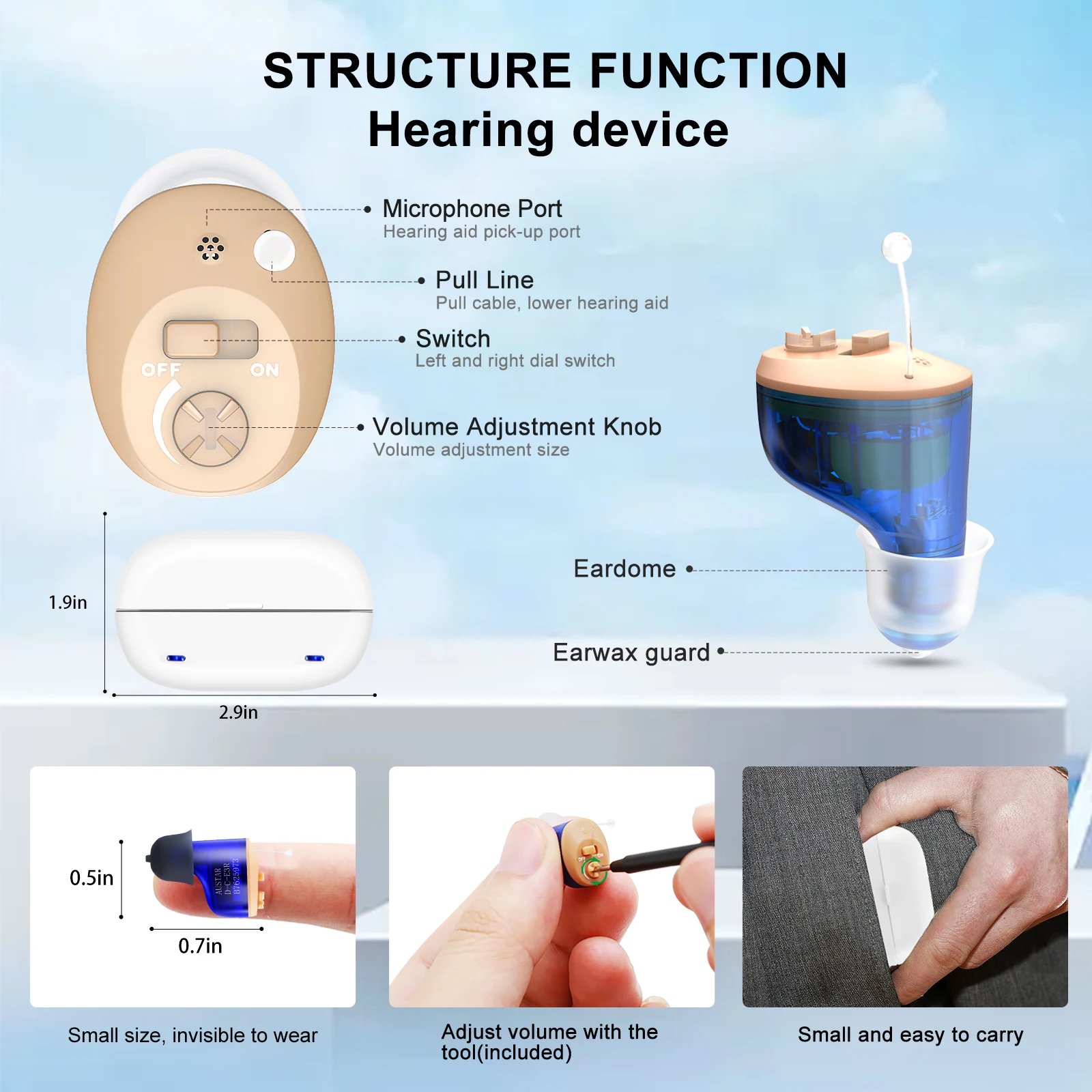 OTC Digital Hearing Aids for Seniors Hearing Loss with Noise Cancelling Invisible Hearing Aid with Magnetic Charging Case