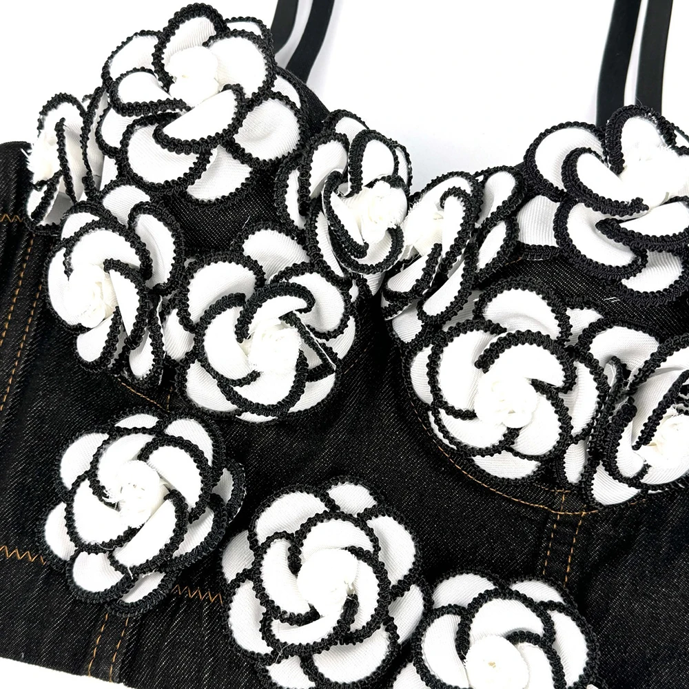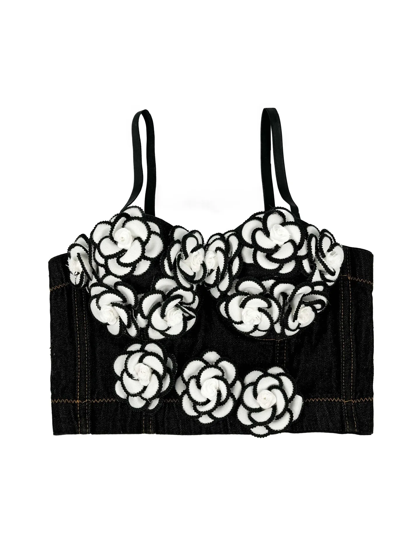IRENE TINNIE-Sexy Lace Crop Top for Women, Lace Beaded Bra, 3D Flower Push Up Bralet, Tube Top, Corset Bustier, Party Streetwear