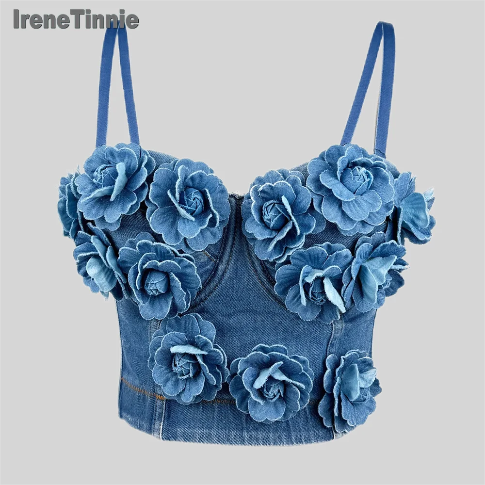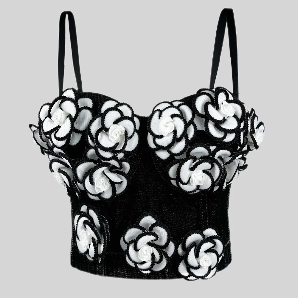 IRENE TINNIE-Sexy Lace Crop Top for Women, Lace Beaded Bra, 3D Flower Push Up Bralet, Tube Top, Corset Bustier, Party Streetwear