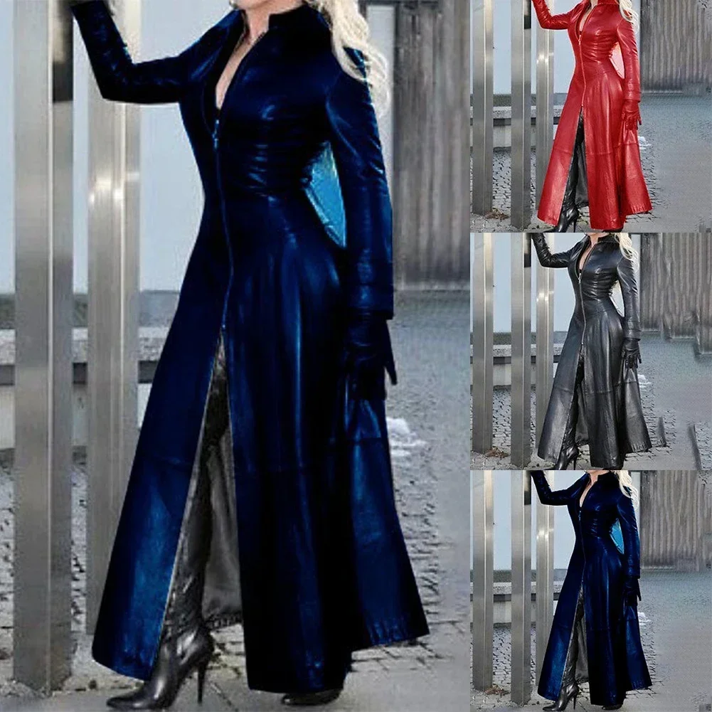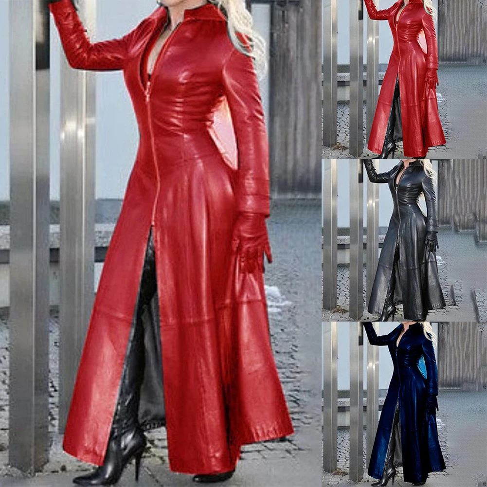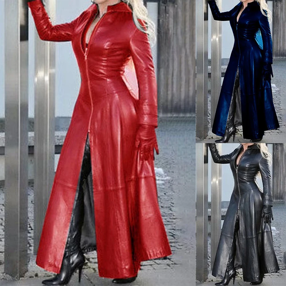 * Item Features:Womens Stand-up Collar Jacket ,PU Leather ,Loose Trench Slim Coats ,Long Parka ,Autumn Winter Coat