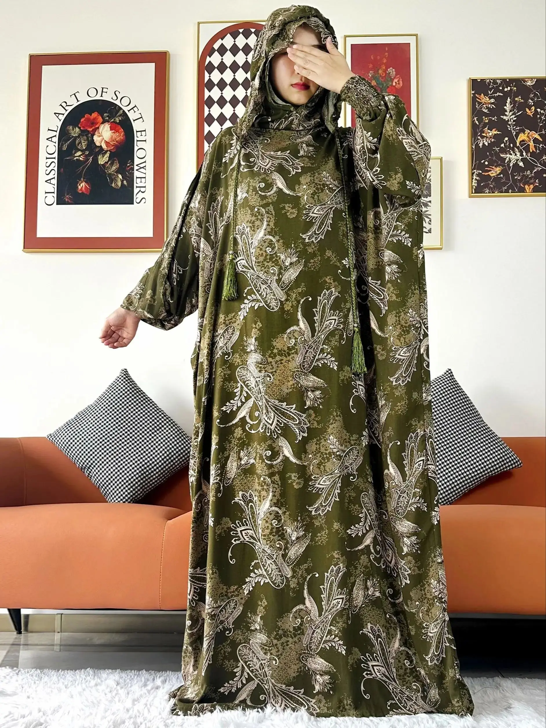 Jilbab Hijab 2 Hats Women Abaya With Hooded Floral Casual Long Sleeve Abaya Tassel Muslim Saudi Prayer Kaftan Oriental Robes