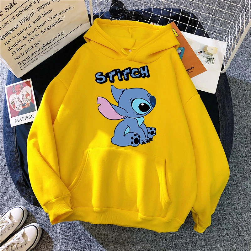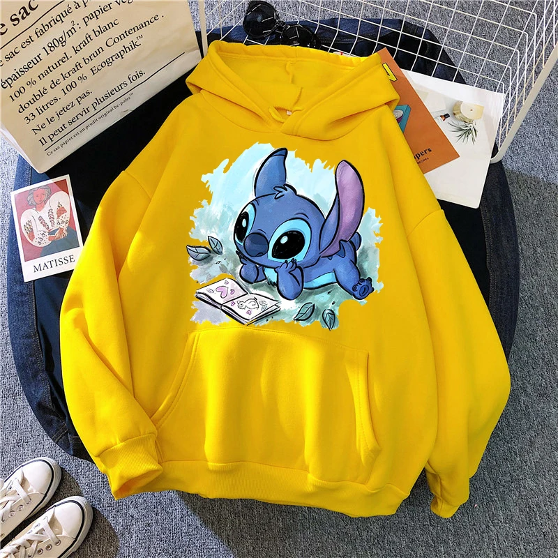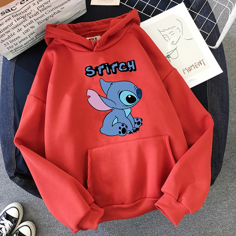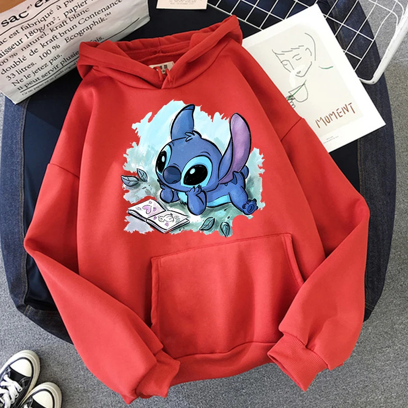 kawaii Girls Winter Disney Stitch Hoodies Women Harajuku Cute Anime Sweatshirt Manga Streetwear Hoody Female