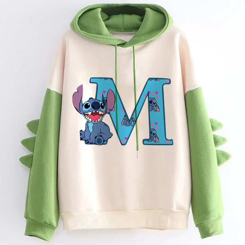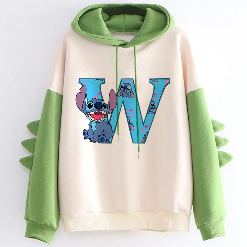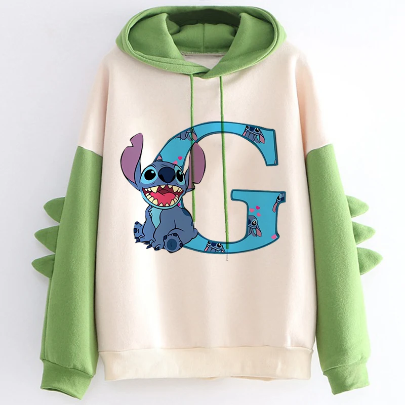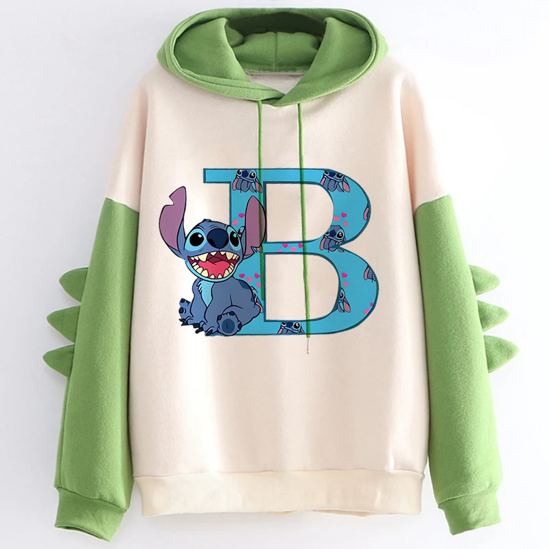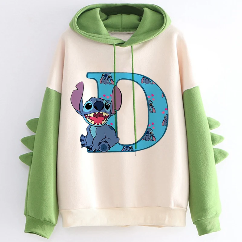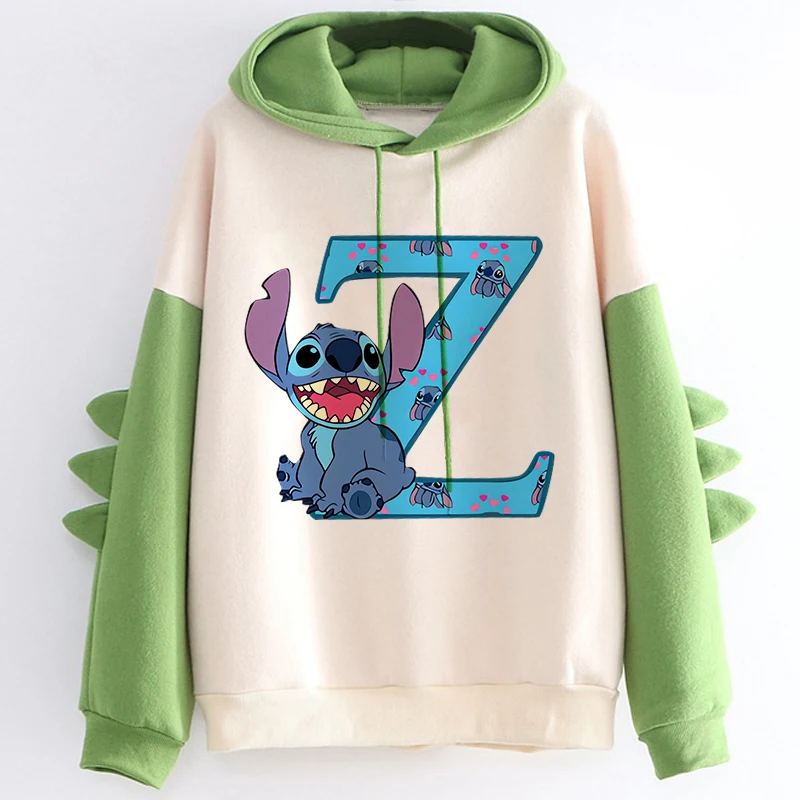 Kawaii Hoody Sweatshirts Women’s Hoodies Cute Kawaii Disney Lilo & Stitch 26 English Letters Print Hoodie Dinosaur Streetwear