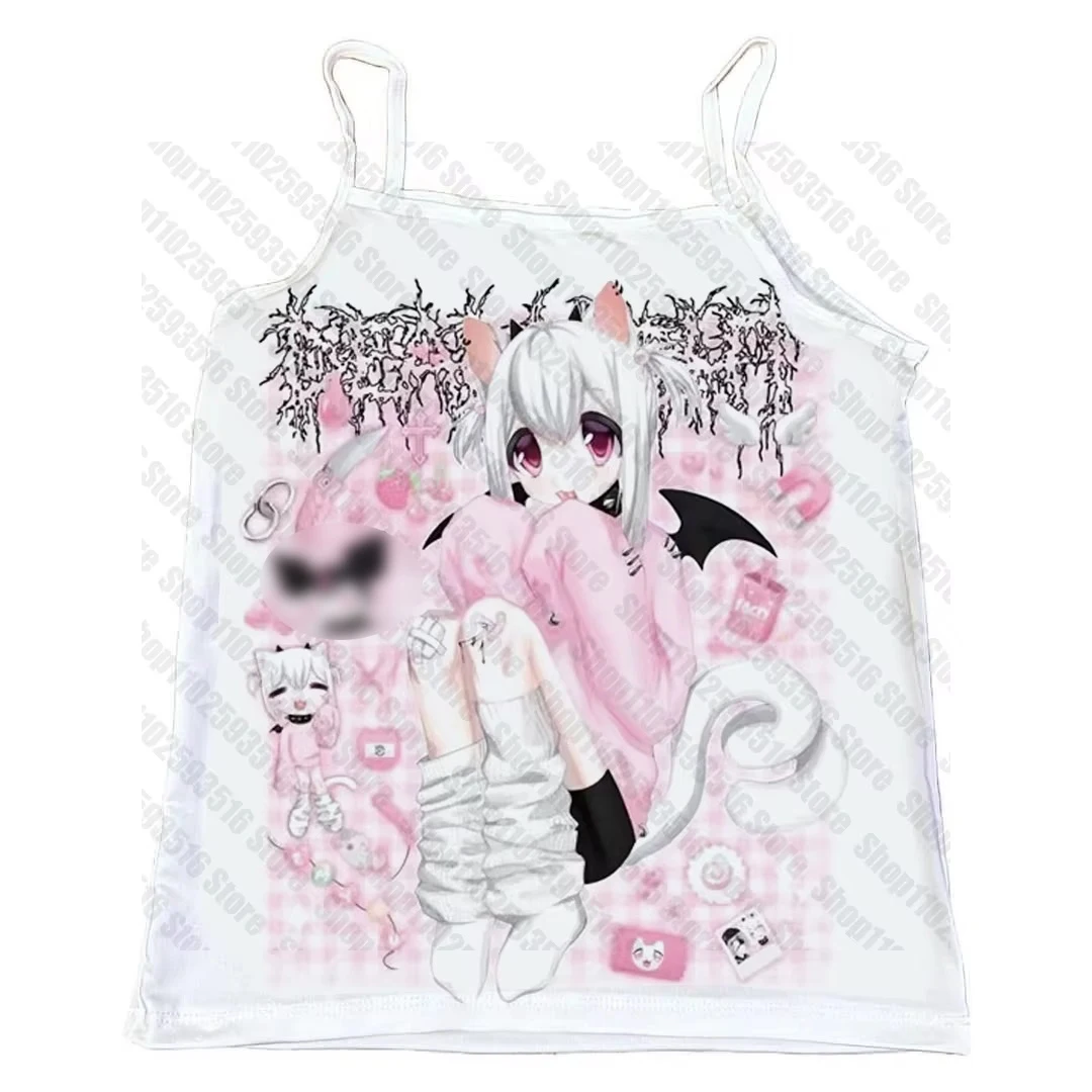 Kawaii Top Y2k Woman Clothing Summer Aesthetic Tops for Women Tops With Suspenders Women’s Cropped Gothic Clothes Tanks & Camis