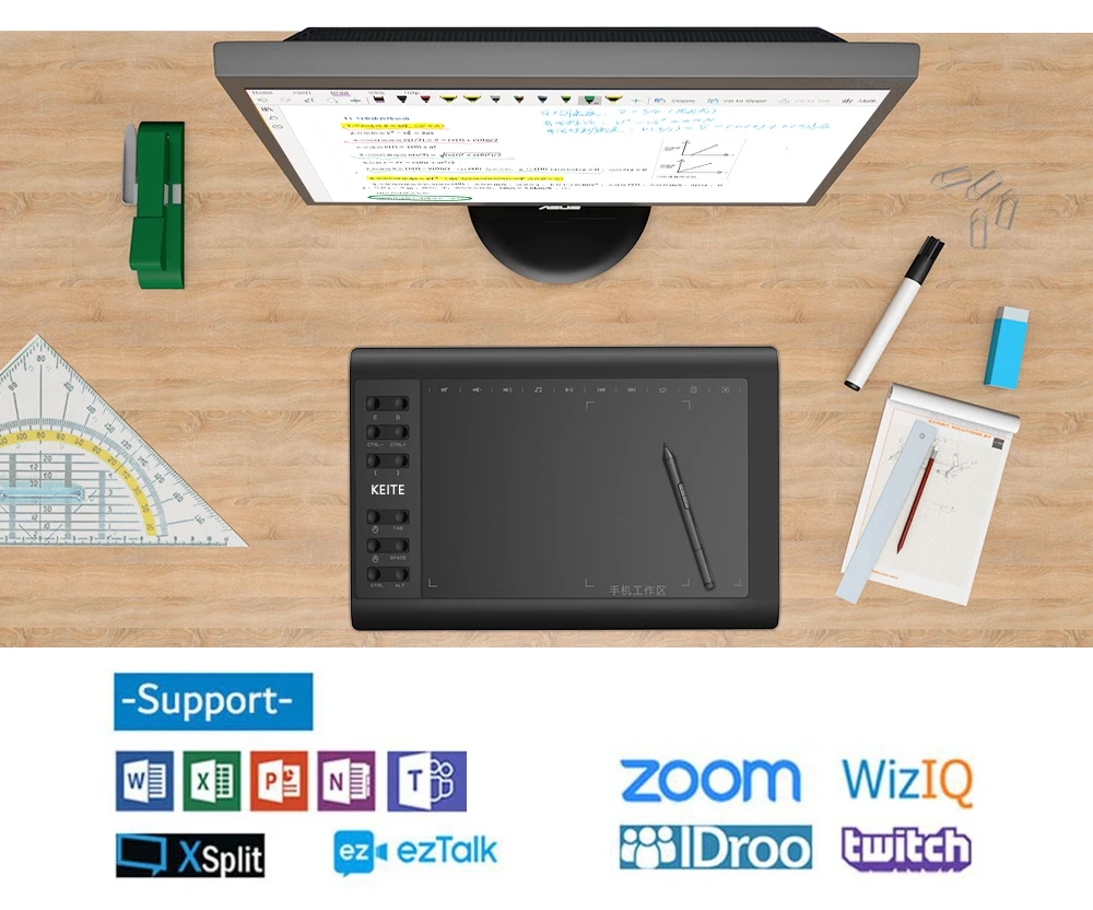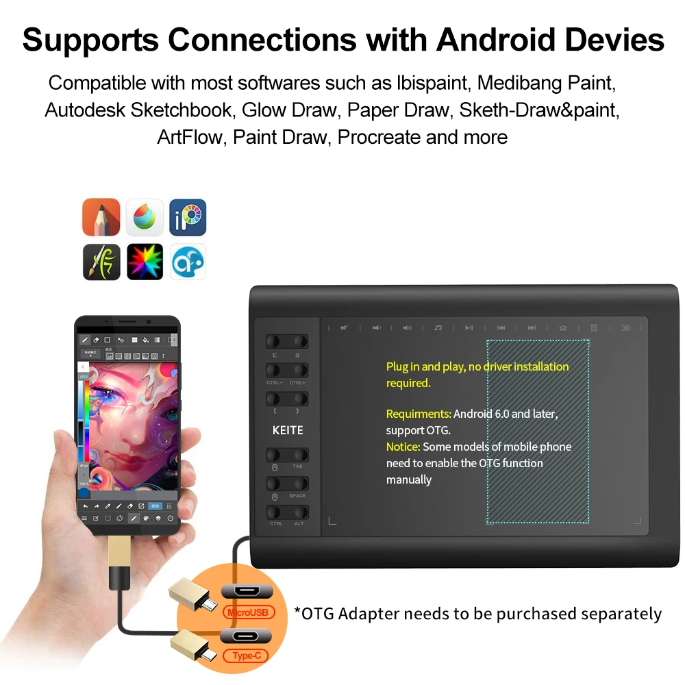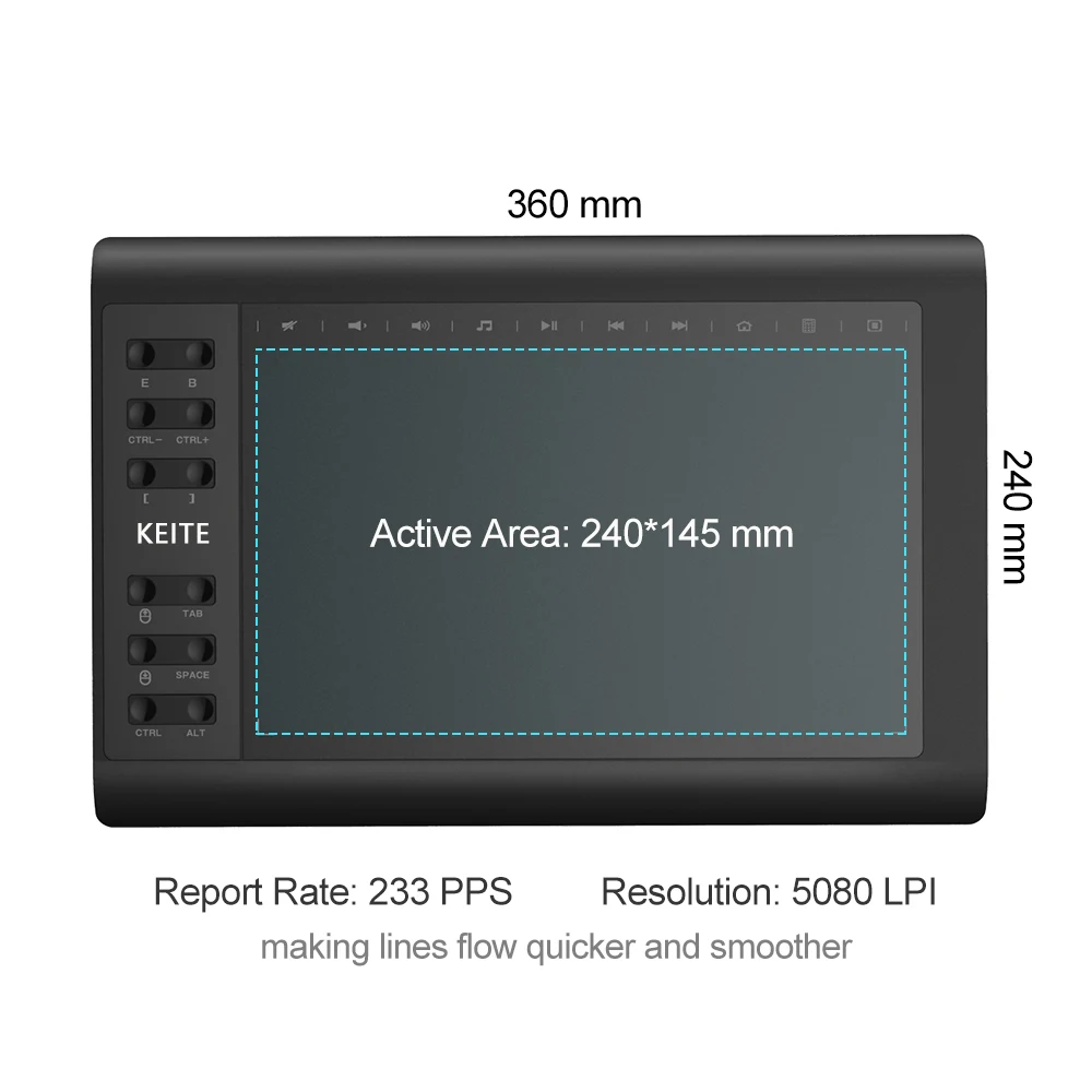KEITE 1060Plus 10×6 Inch Digital Graphic Tablet for Drawing Anime 8192 Level Battery-Free Pen Support Android/Windows/Mac OS