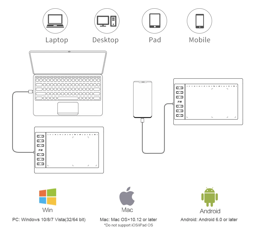 Works on Android 6.0, Win 7/8/10/11 and Mac OS 10.12 or above. Compatible with most drawing softwares like Adobe Photoshop, Illustrator, Clip Studio, Lightroom, Sketchbook Pro, Manga Studio, CorelPainter, FireAlpaca, OpenCanvas, Paint Tool Sai2, Krita and so on. Synchronize with Adobe Acrobat Reader DC signature Application, satisfied with the need of digital business signature.