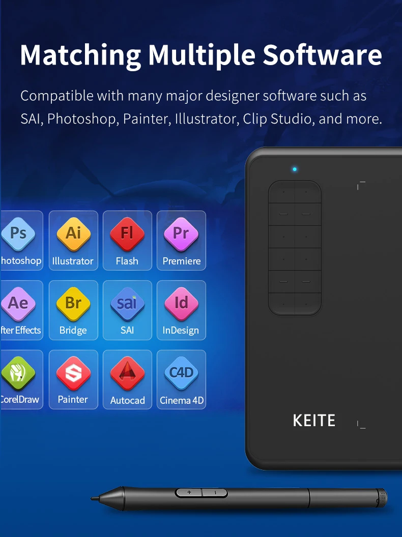 KEITE G12 Graphic Drawing Tablet with Large Active Area Digital Tablet Support Android Phone 8192 Level