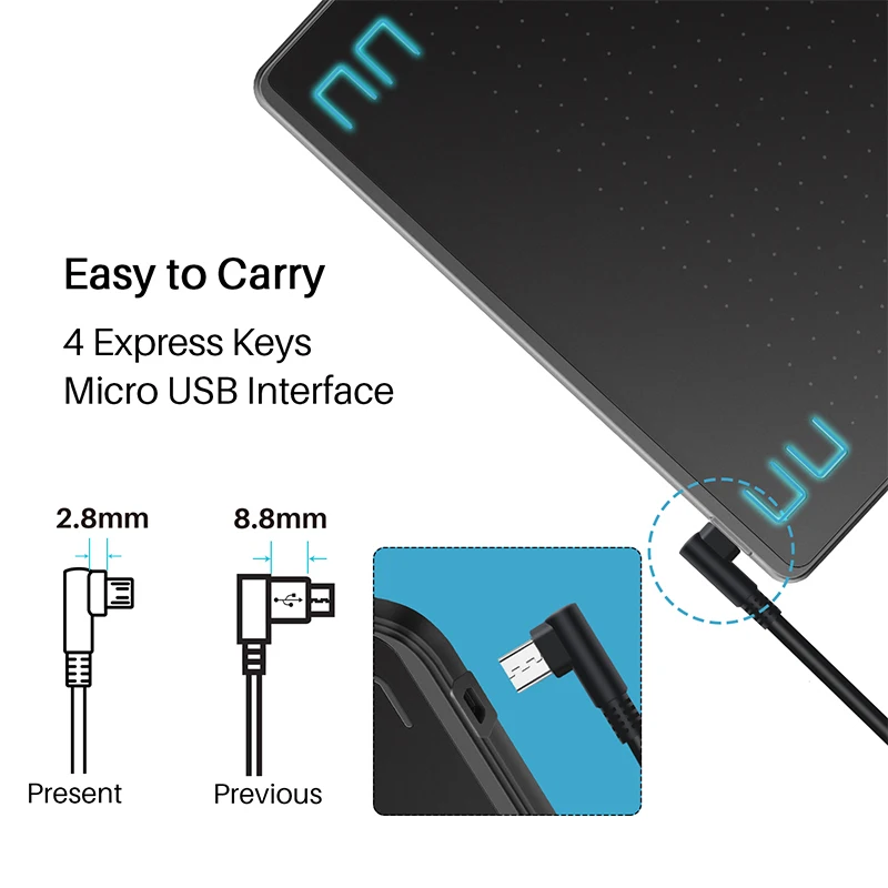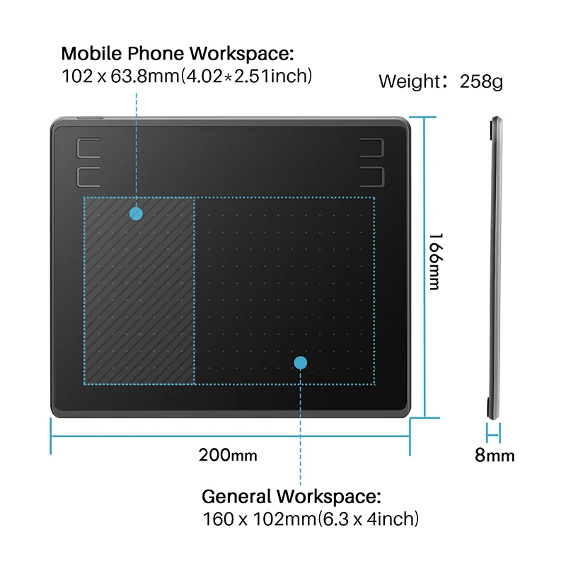 Once connected to a phone or tablet, the tablet will automatically detectand change intophone mode, in which the pen can only work in the area to the left. Buttons on both the tablet and the pen will not work in phone mode either. Also you cannot rotate your Android phone or tablet when using Phone mode.