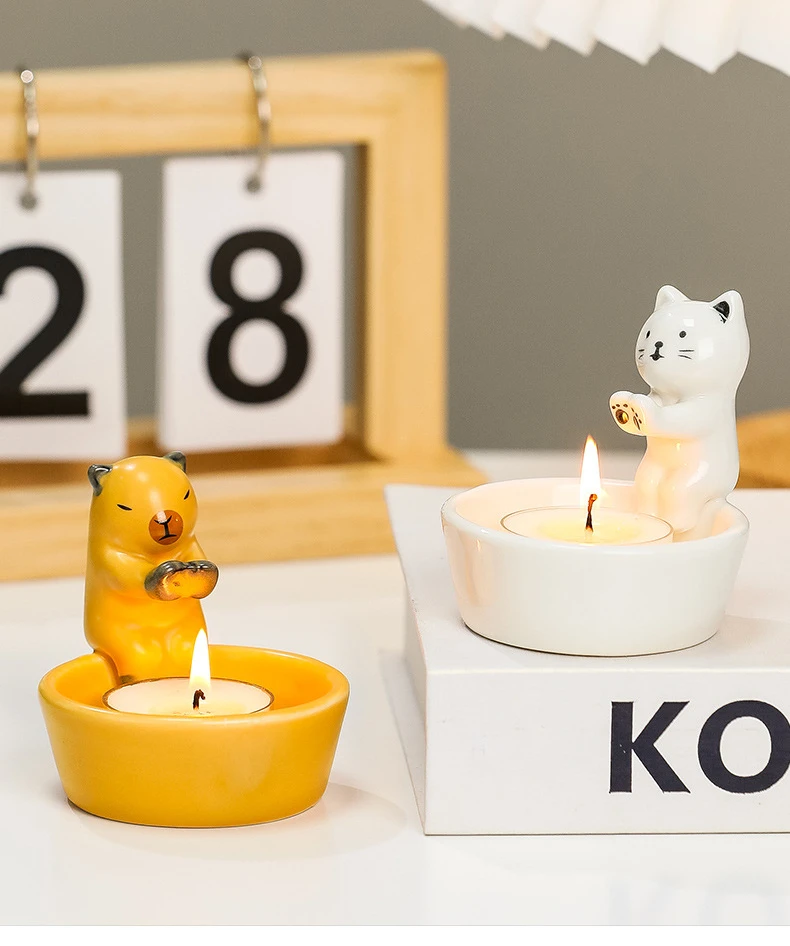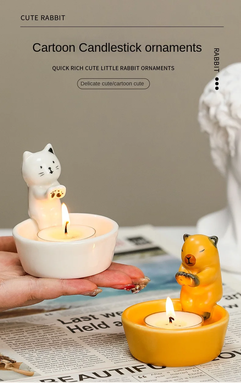 ��【 Cute Design】The Cartoon Kitten/Capybara Candle Holder is the perfect decoration for your home, living room, bedroom, dining room, kitchen, etc. Cartoon kitten/Capybara candle holder is also a great gift for friends and family