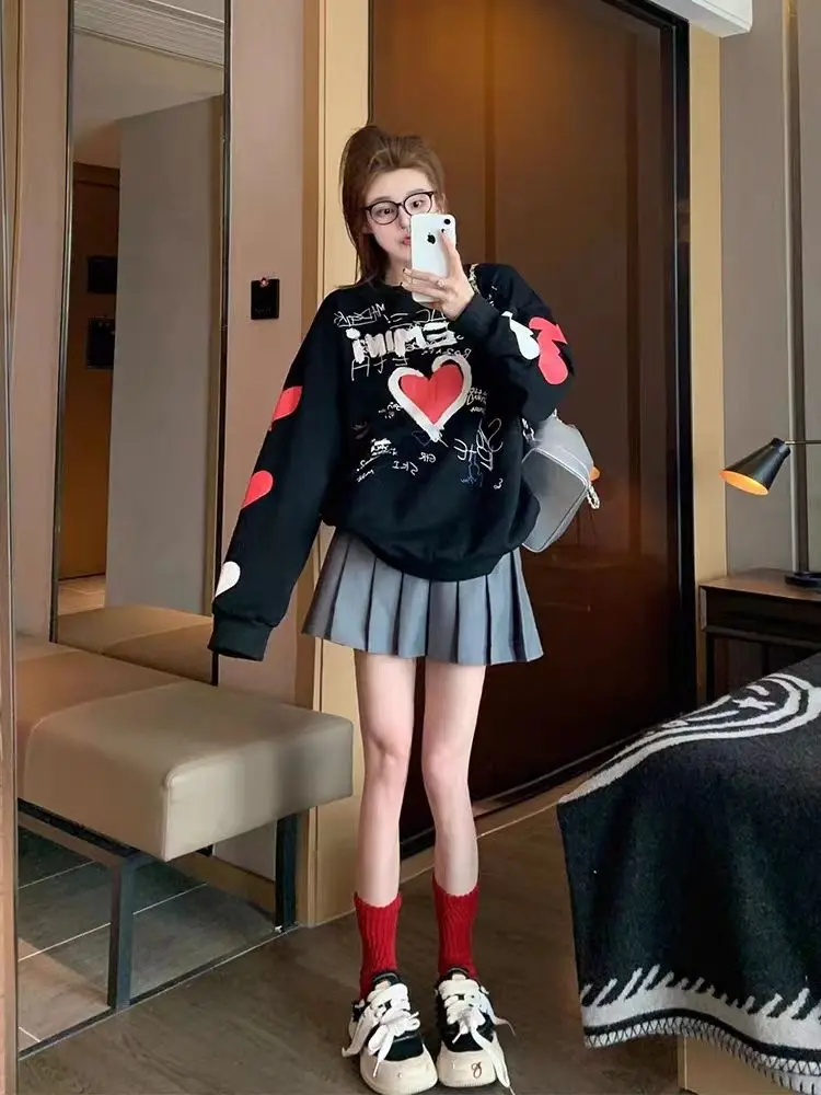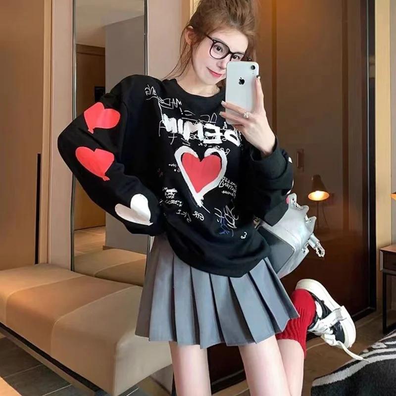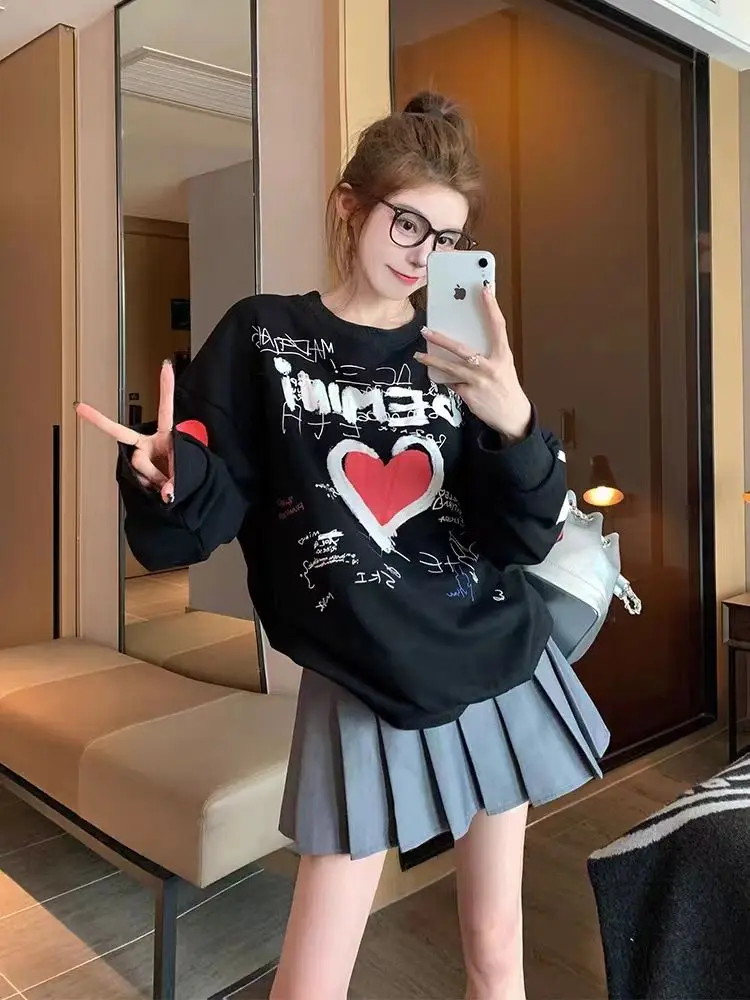 Korean Trend Loose Long Sleeve T-Shirts Femme Thick All-match Top Tee Women Clothing Fashionable Printing O-neck Sweatshirts