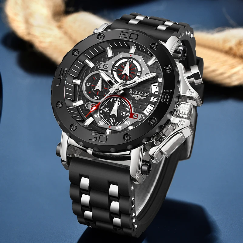 LIGE 2023 New Fashion Silicone Watch Men Casual Men’s Military Watch Top Brand Luxury Sports Chronograph Clock Relogio Masculino